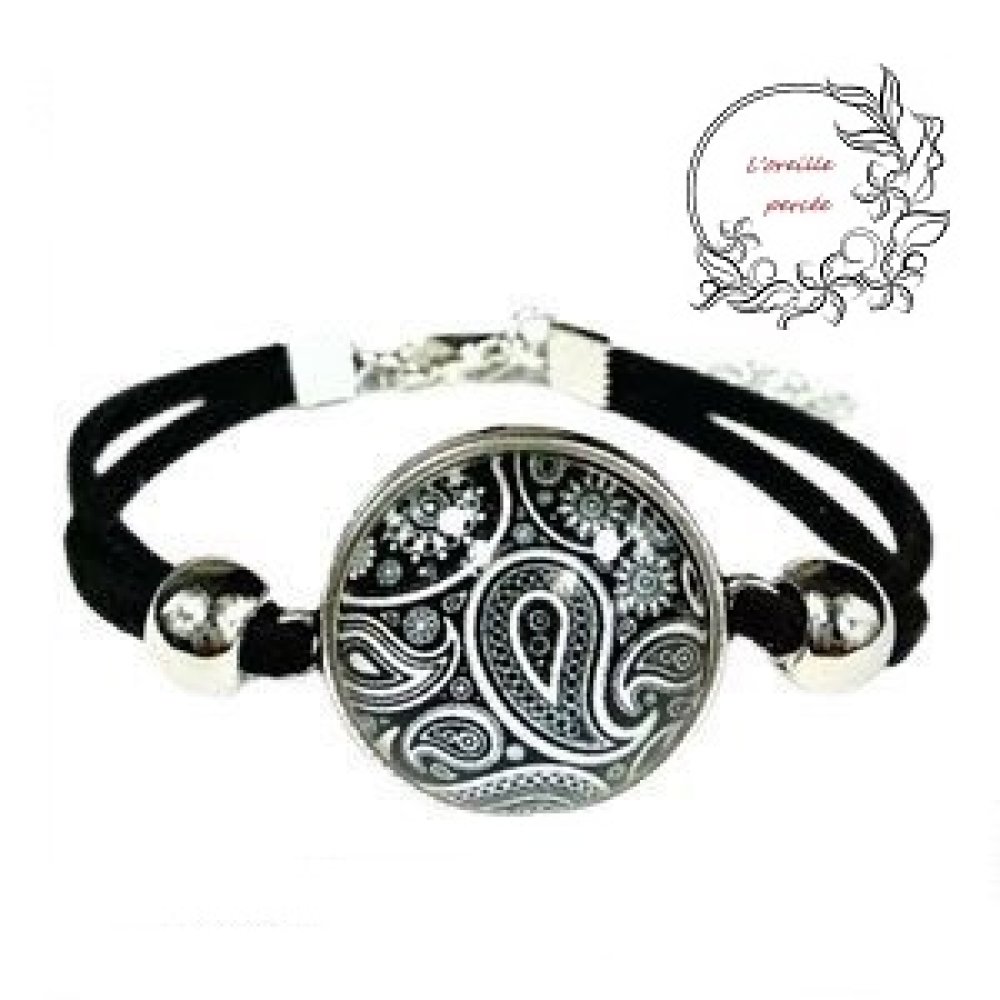 Très joli bracelet réaliser avec un support cabochon, de la suédine et de 2 perles rondes en acier inoxydable.
