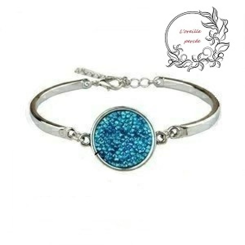 Joli bracelet réaliser avec un support cabochon rehausser de son cabochon en rèsine non lisse.