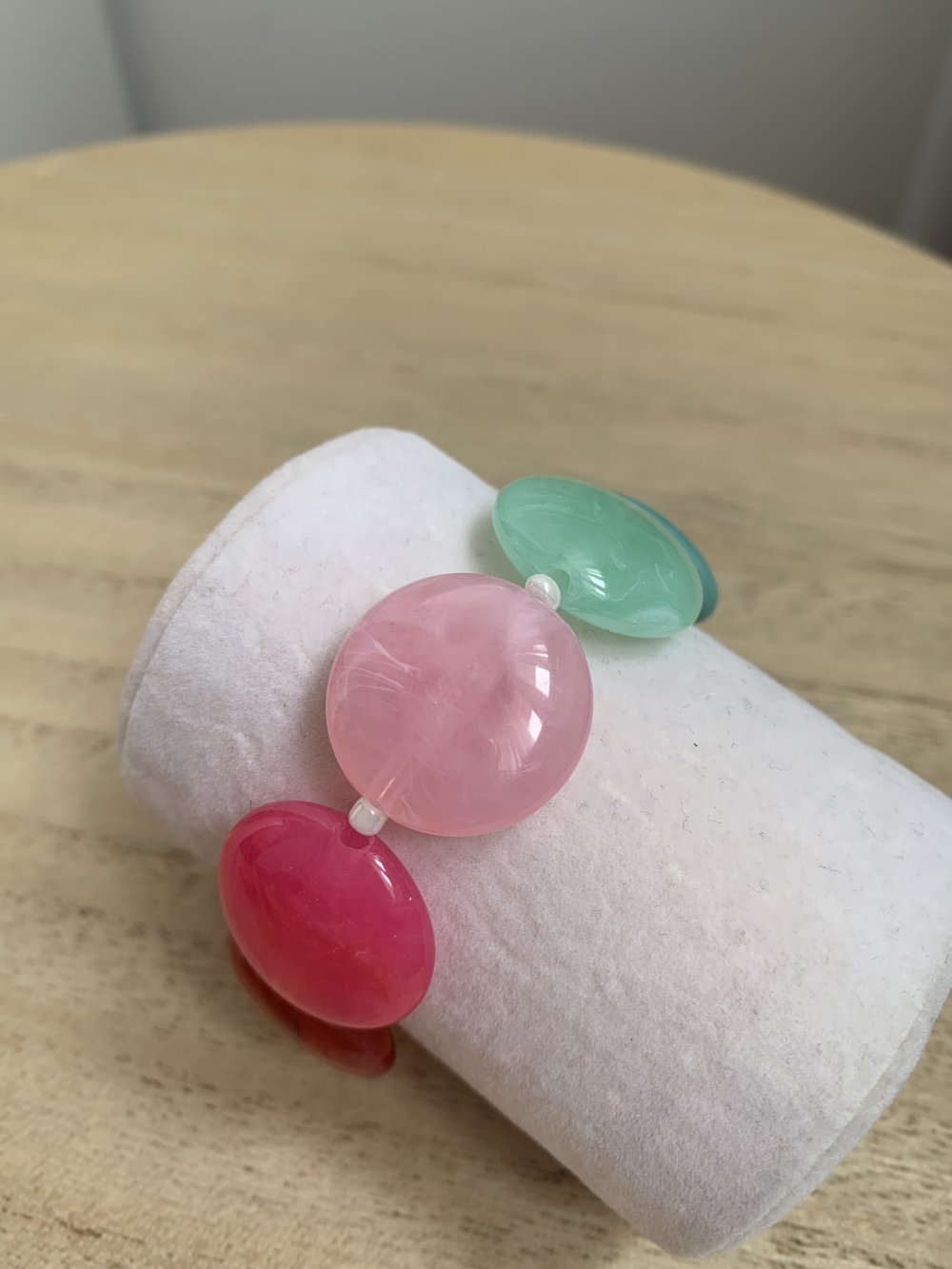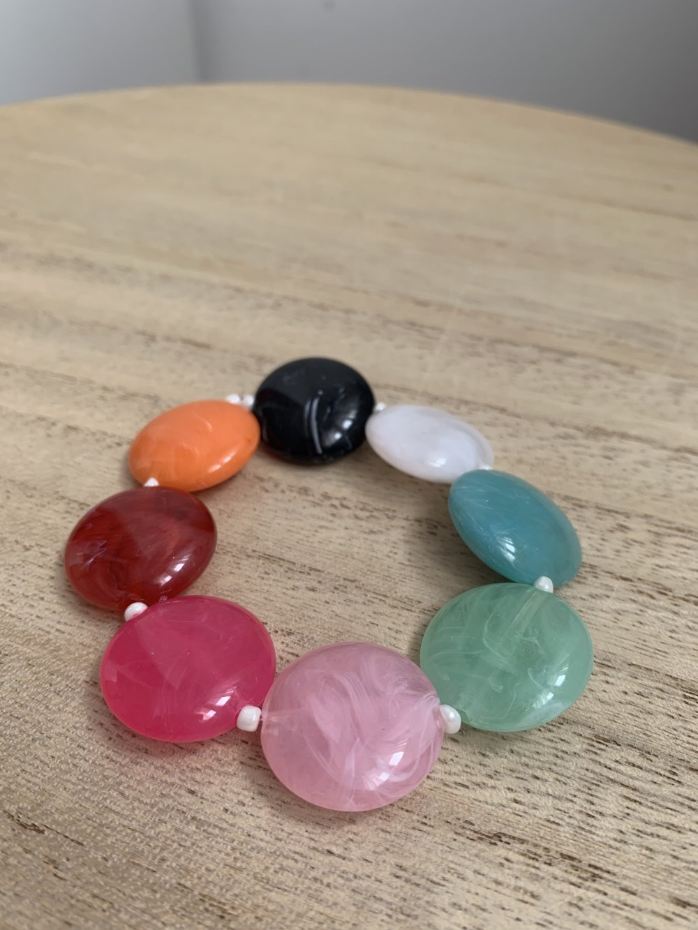Bracelet élastique avec différentes perles en acétate.