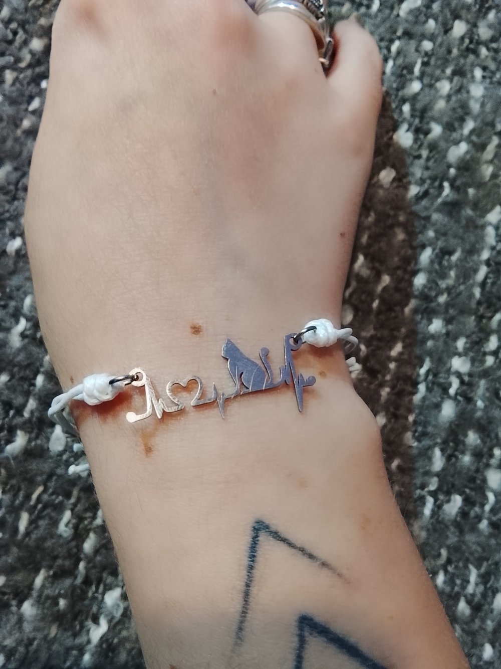 Bracelet Chat cœur battant argentée blanc