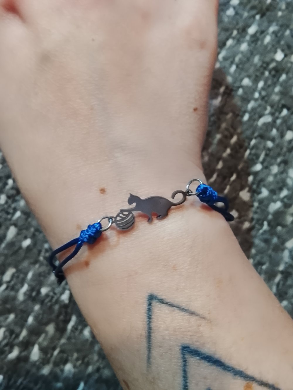Bracelet Chat pelote argentée bleu