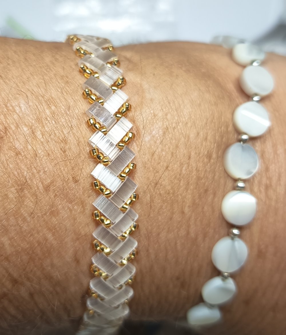Craquez pour ce bracelet  original et raffiné tissé à la main en perles Miyuki Half Tila et Miyuki Delica.