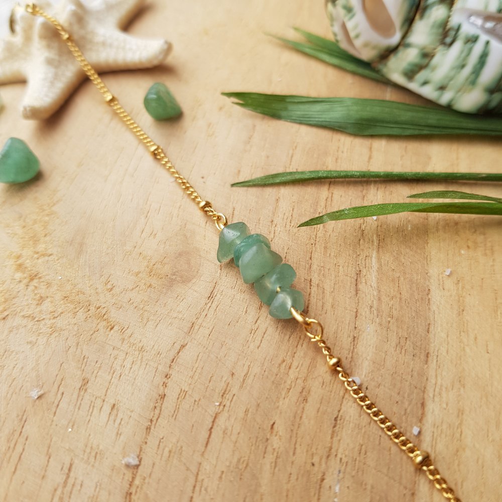 Elégant et rafraichissant, ce joli bracelet réglable de la collection AVENTURA en acier inoxydable et en aventurine vous fera visiter la jungle amazonienne !