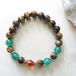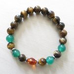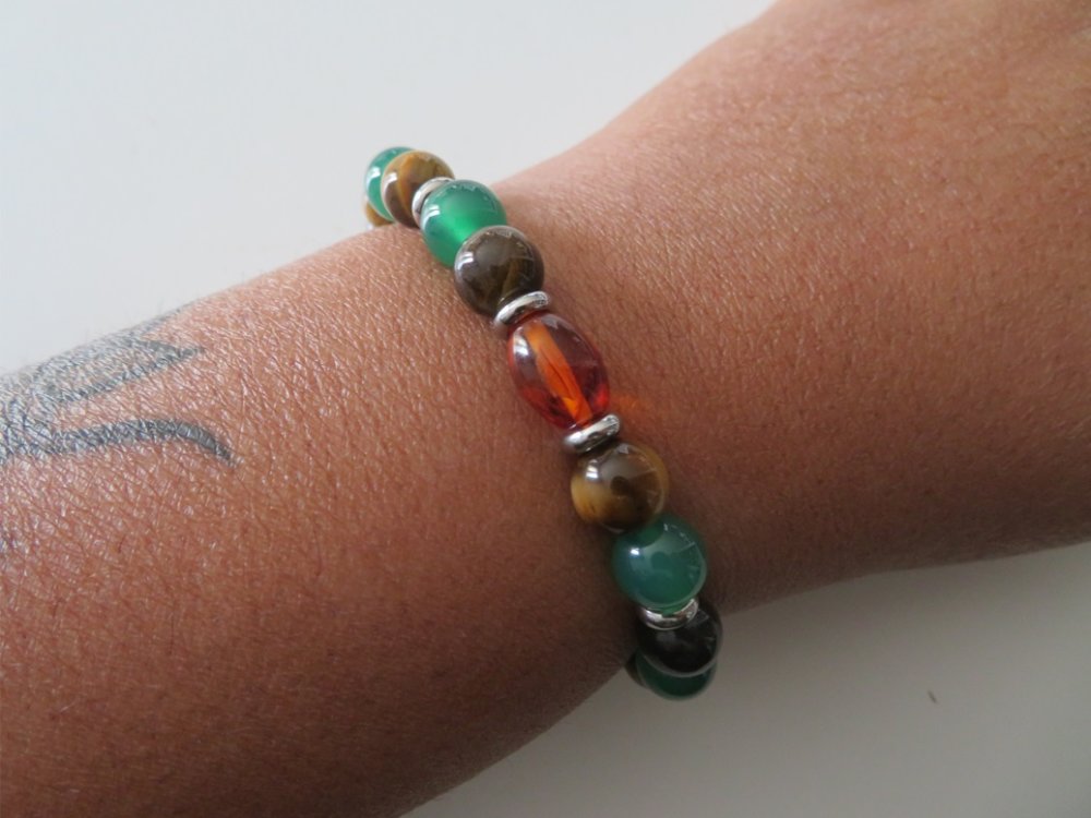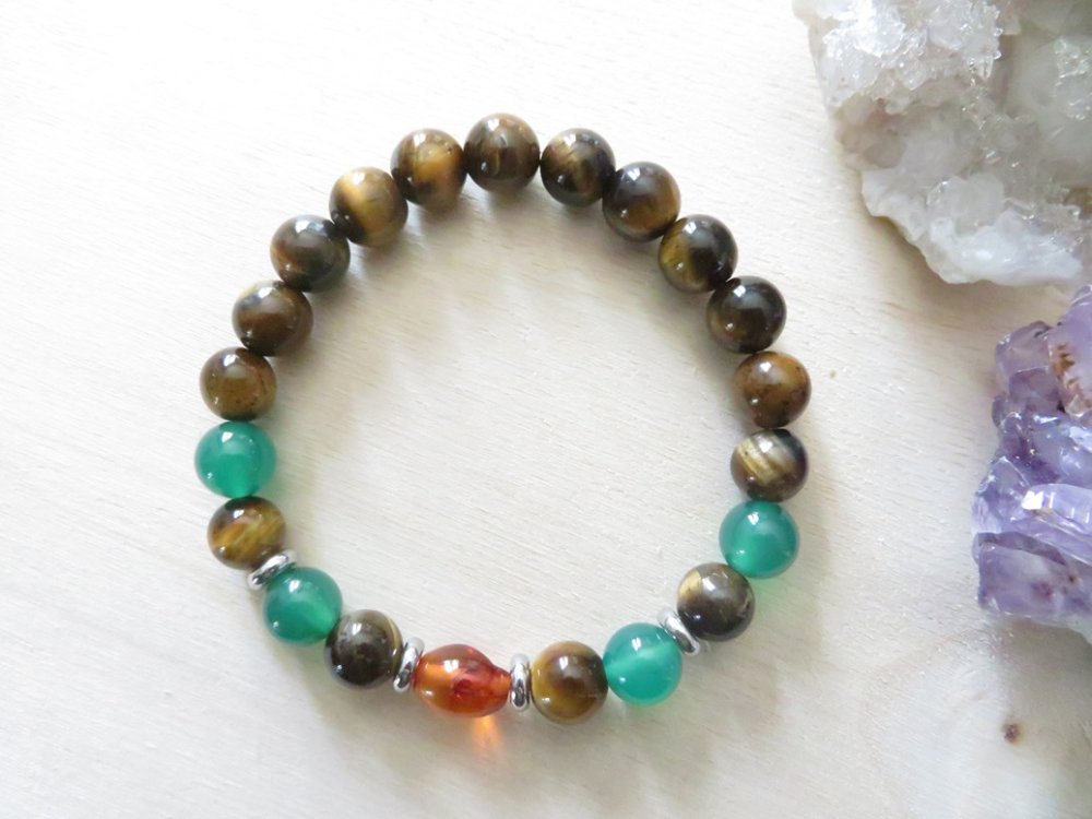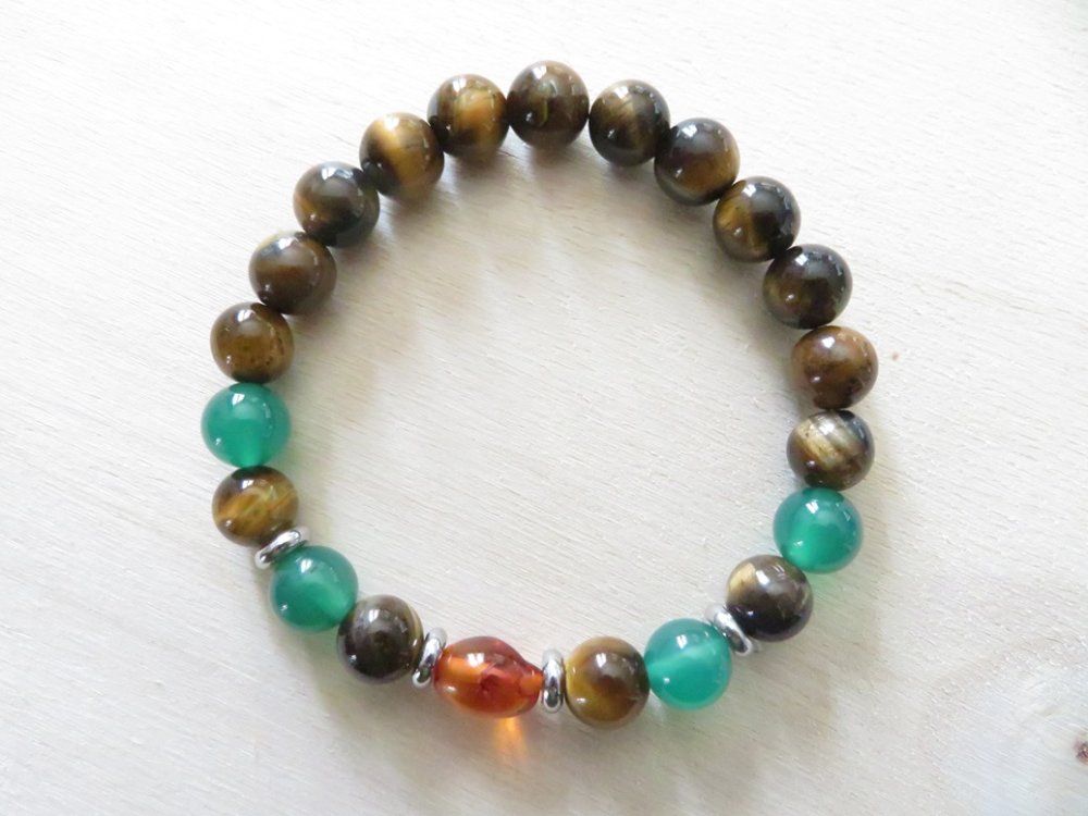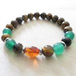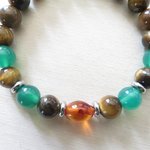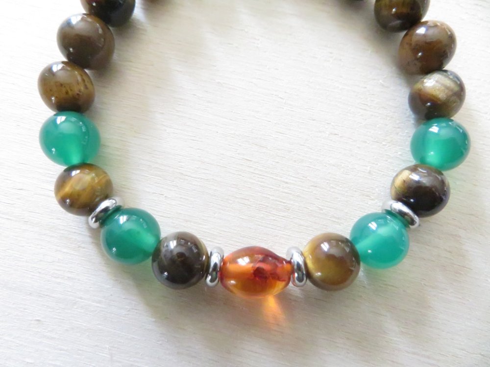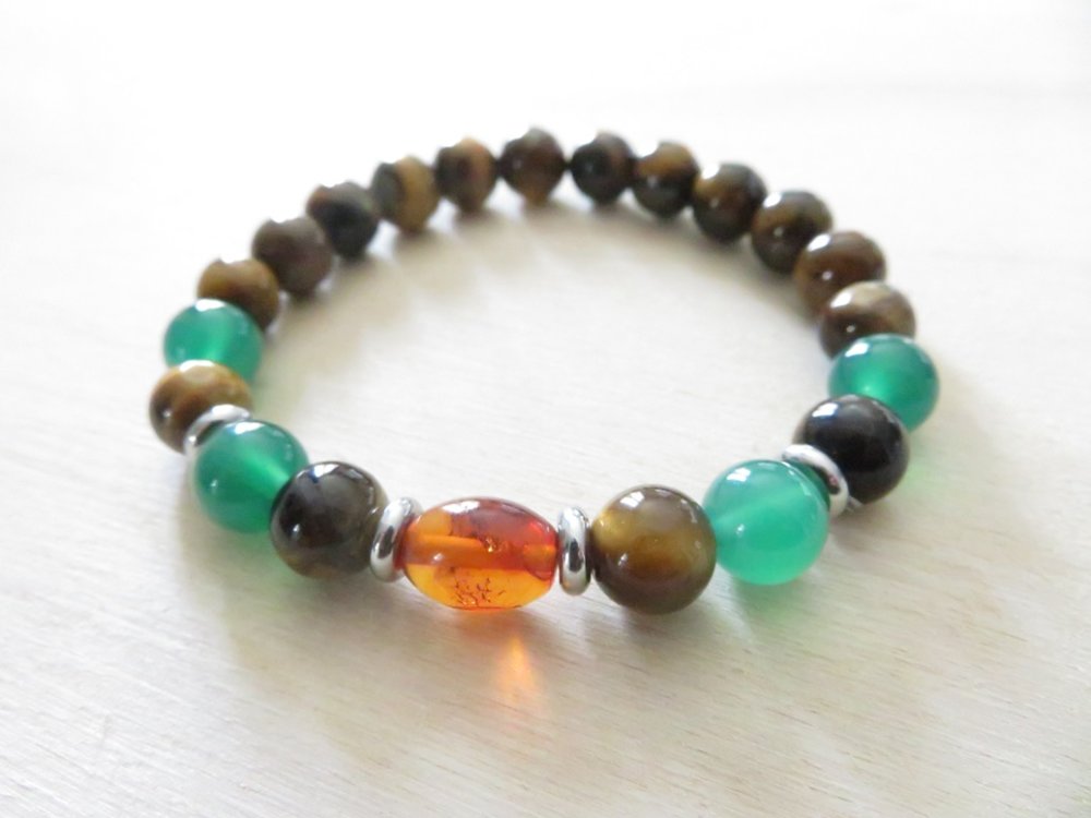 Perles naturelles Œil de tigre (rondes 8 mm), Perles naturelles Agate verte (rondes 8 mm), Perles naturelles Ambre de la Baltique (forme olive), Entretoises en acier inoxydable
