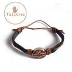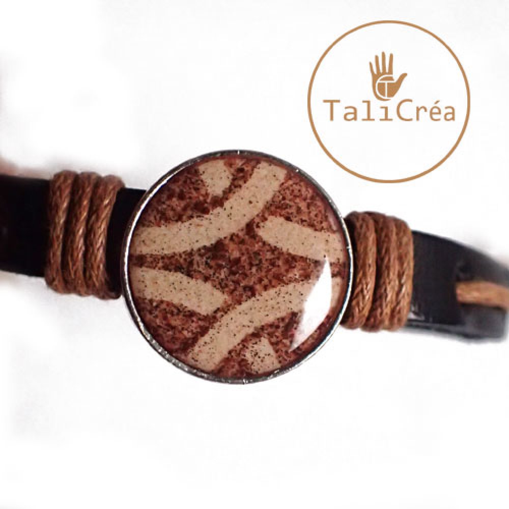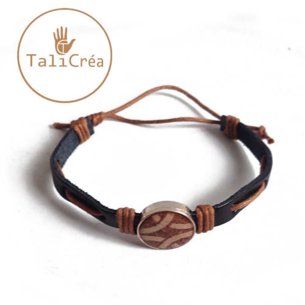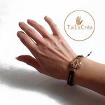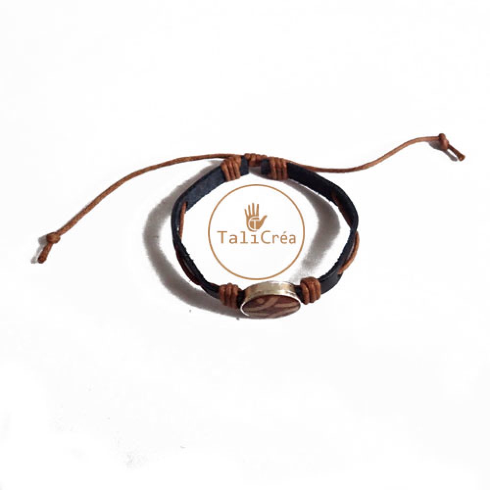 Un bracelet en cuir, mixte (pour homme ou femme) avec cordelette de coton ciré marron, système de noeuds réglables pour l'adapter à toutes tailles de poignet.