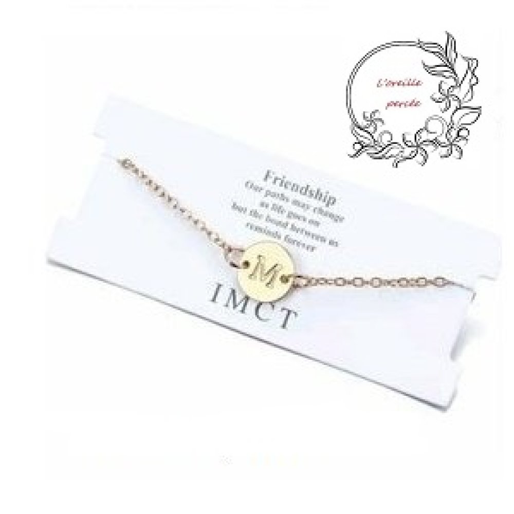 Joli bracelet doré avec son petit médaillon et sa lettre alphabet graver sur le dessus.