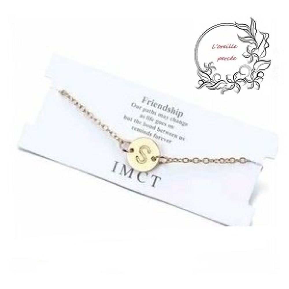 Joli bracelet doré avec son petit médaillon et sa lettre alphabet graver sur le dessus.