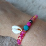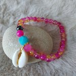Laisse-toi séduire par ce bracelet élastique de 16 cm, composé de perles roses et dorées 💖, symbole de douceur, de féminité et de lumière.