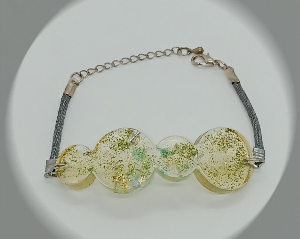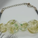Ce bracelet est une véritable innovation artisanale : il marie l'éclat précieux d'un trésor végétal à un confort inégalé grâce à l'utilisation d'une résine spéciale flexible et légère. Il épousera parfaitement la forme du poignet, garantissant un port agréable et une grande durabilité.