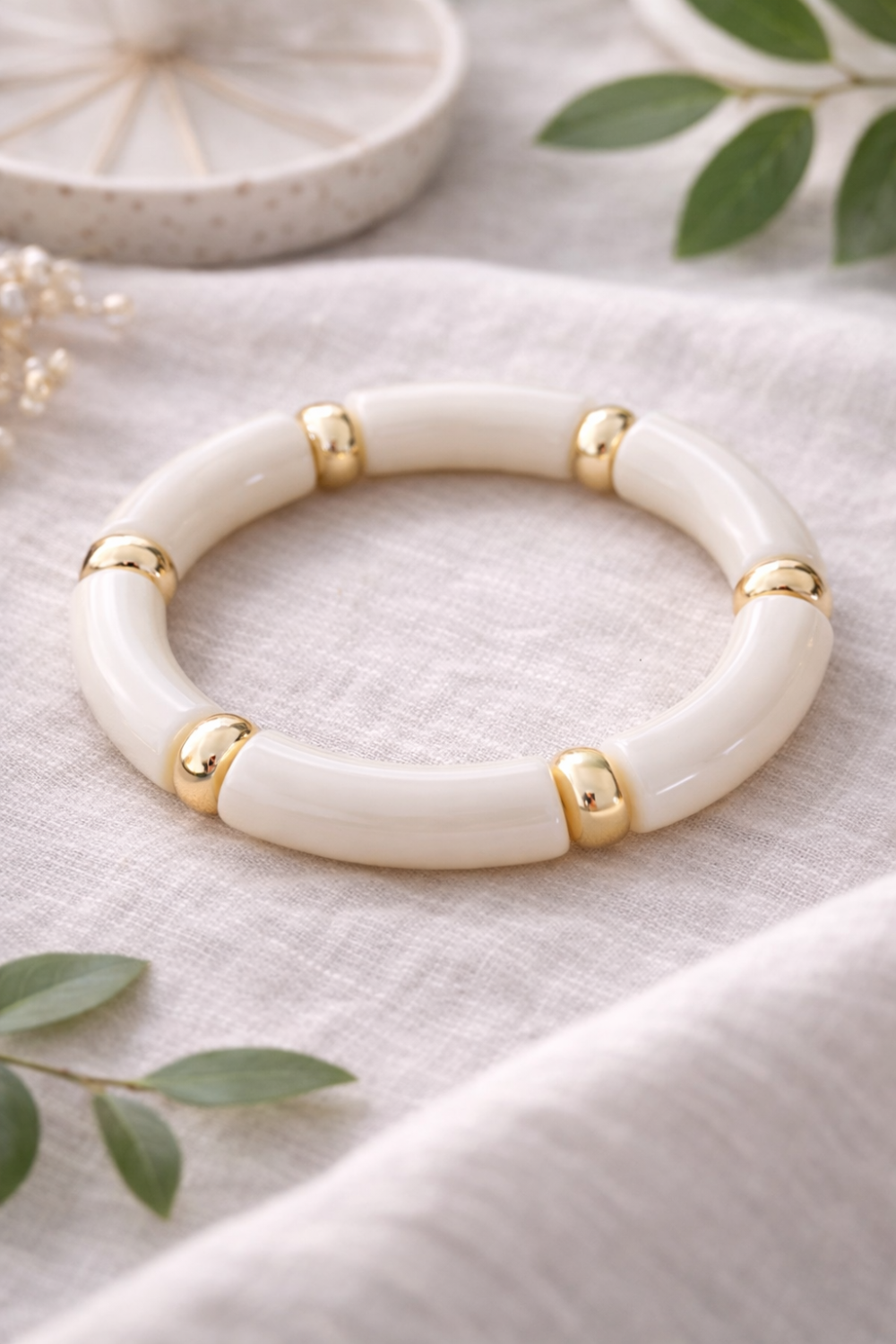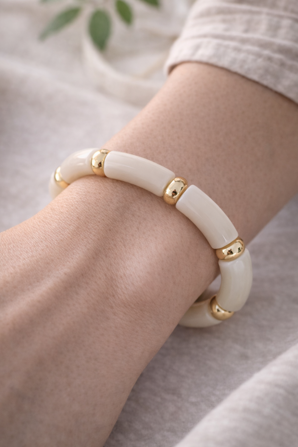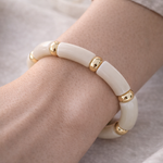 Bracelet élastique blanc & doré – Élégance