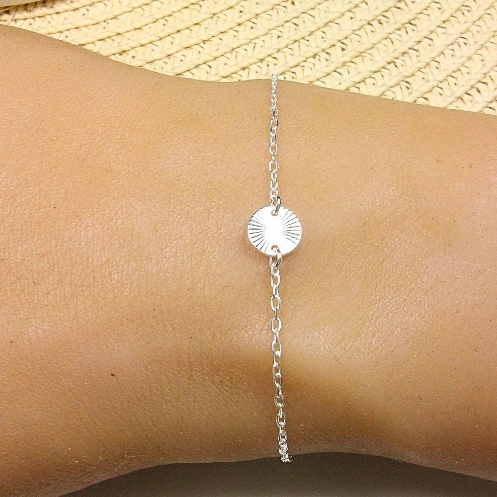 Un éclat d’argent comme un rayon de soleil à votre poignet. Ce bracelet fin en argent 925 est orné d’une médaille au motif rayon de soleil
