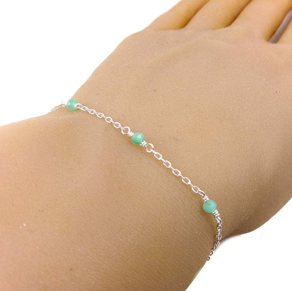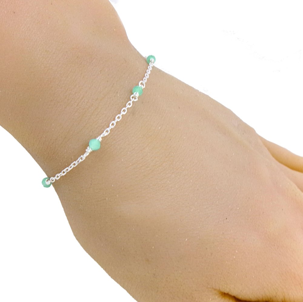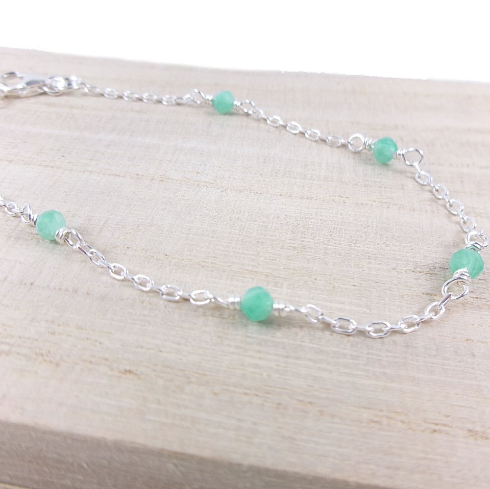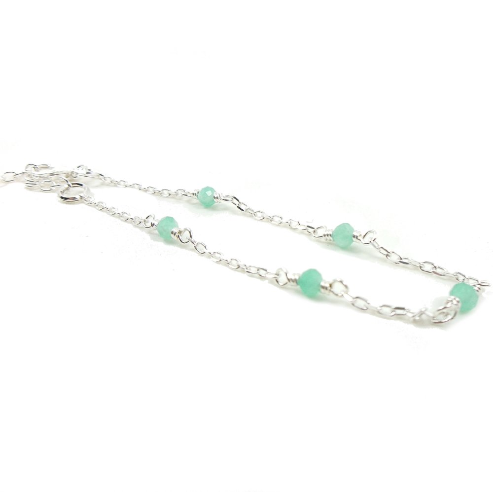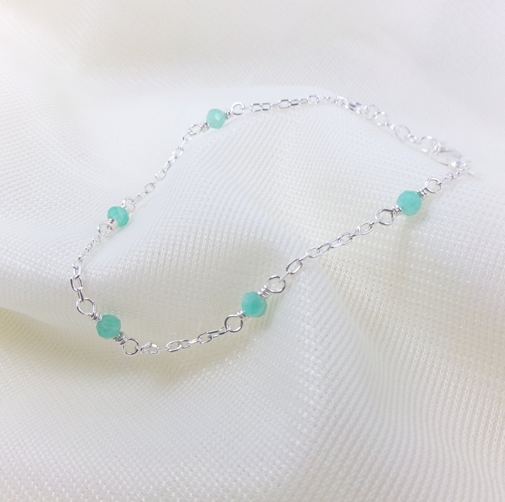 💫 Ce bracelet allie la finesse d’une chaîne en argent massif à la douceur des pierres d’amazonite, reconnues pour leurs teintes bleues vertes et leurs vertus apaisantes.