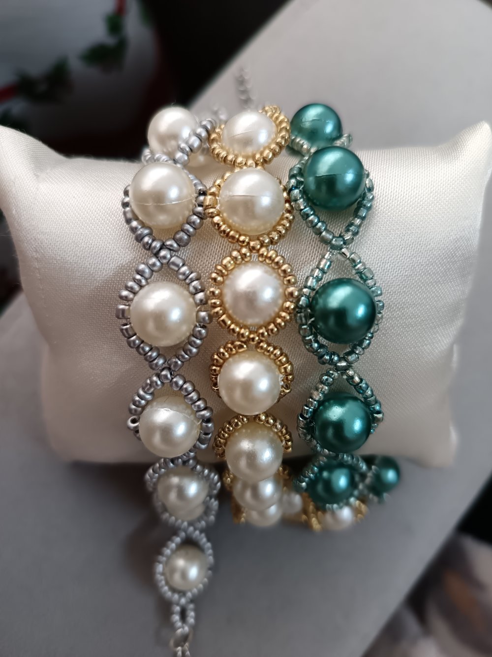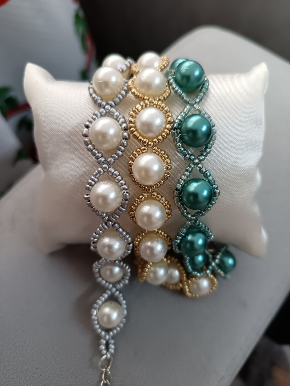 bracelet perles, bracelet tissé à l’aiguille, bracelet fait main, bracelet artisanal, bracelet acier inoxydable, bracelet ajustable, bracelet femme, bracelet perles nacrées, bracelet élégant, bracelet chic, bijou fait main, bracelet couleur au choix, bracelet créateur, bracelet neuf, bracelet cadeau femme, bracelet perles rondes, bracelet fantaisie élégant