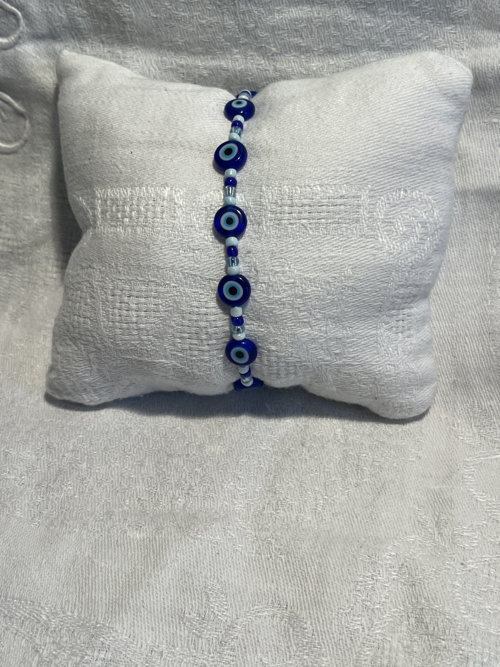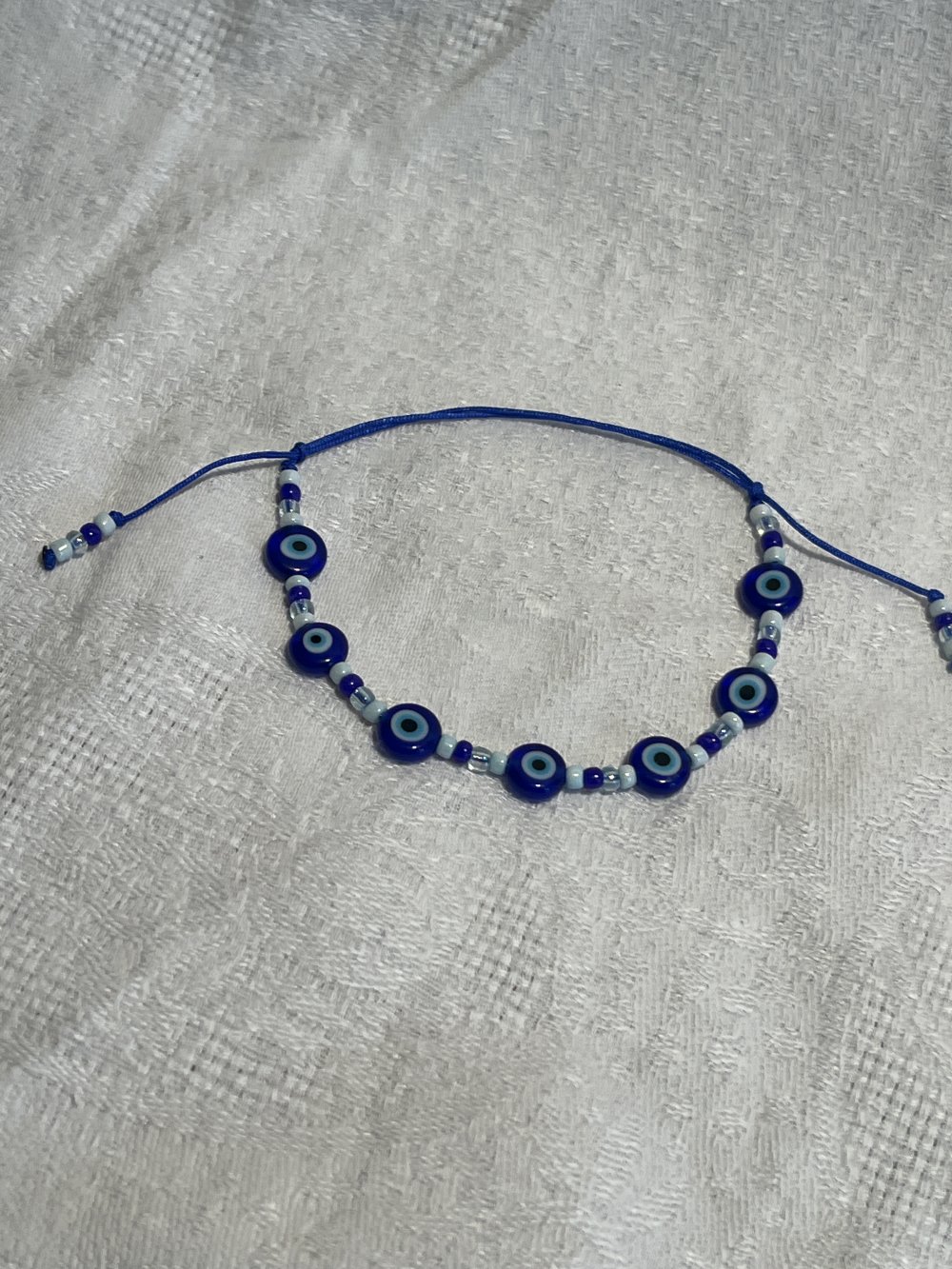 Bracelet en perles bleues et 7 perles en verre œil bleu