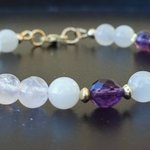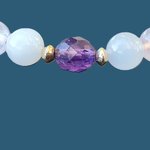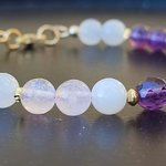 Pierre de Lune, Quartz Rose et Améthyste, sublimées par de fines perles en plaqué or 18K.