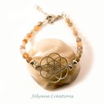 Bracelet fin de perles en pierre de gemme, pierre naturelle de agate de Botswana dans les tons marron et beige avec une graine de vie argentée au centre..