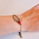 Bracelet éventail graphique Art Déco bronze et émail rouge