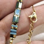 - des perles plates half miyuki dans les nuances, de bleu, turquoise, bronze, vert et doré.