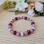Bracelet perles en verre jaune blanche et vieux rose
