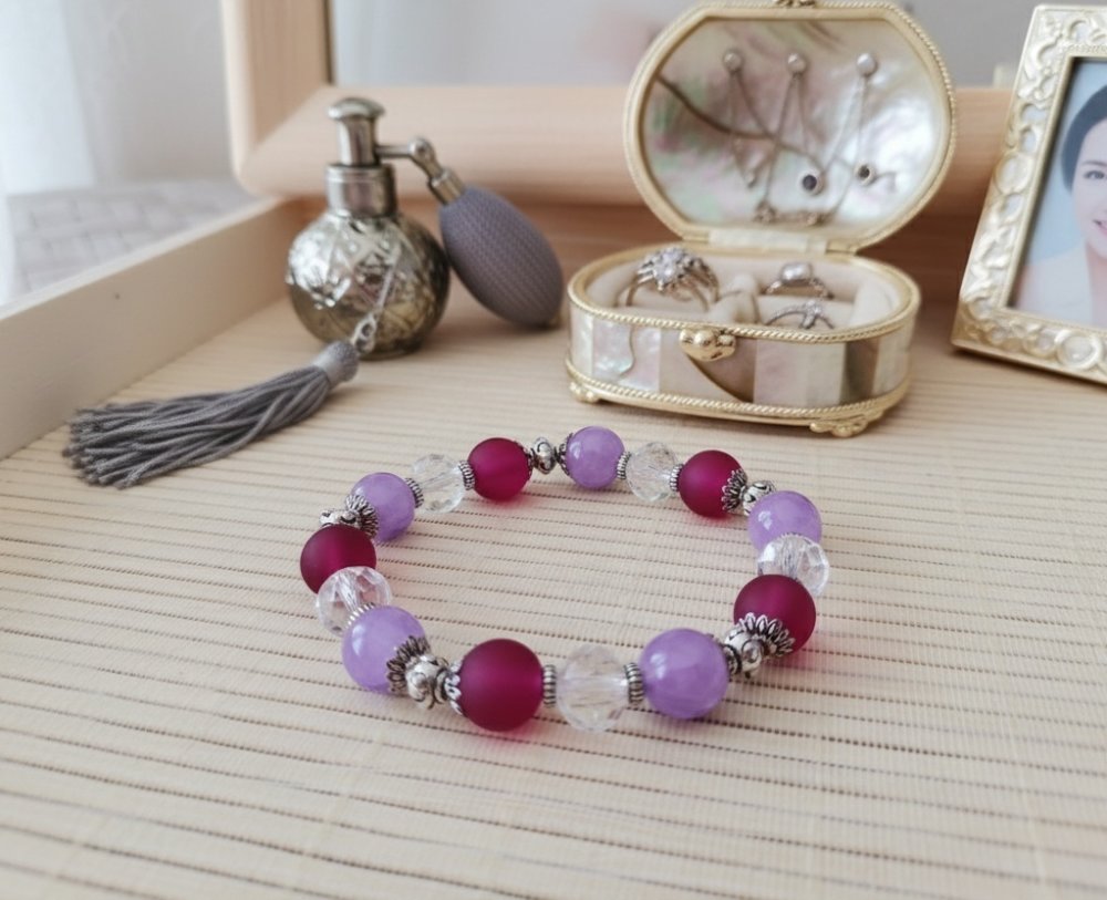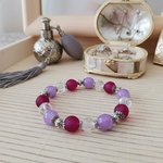 Bracelet fil élastique perles en verre mauve, violet et cristal
