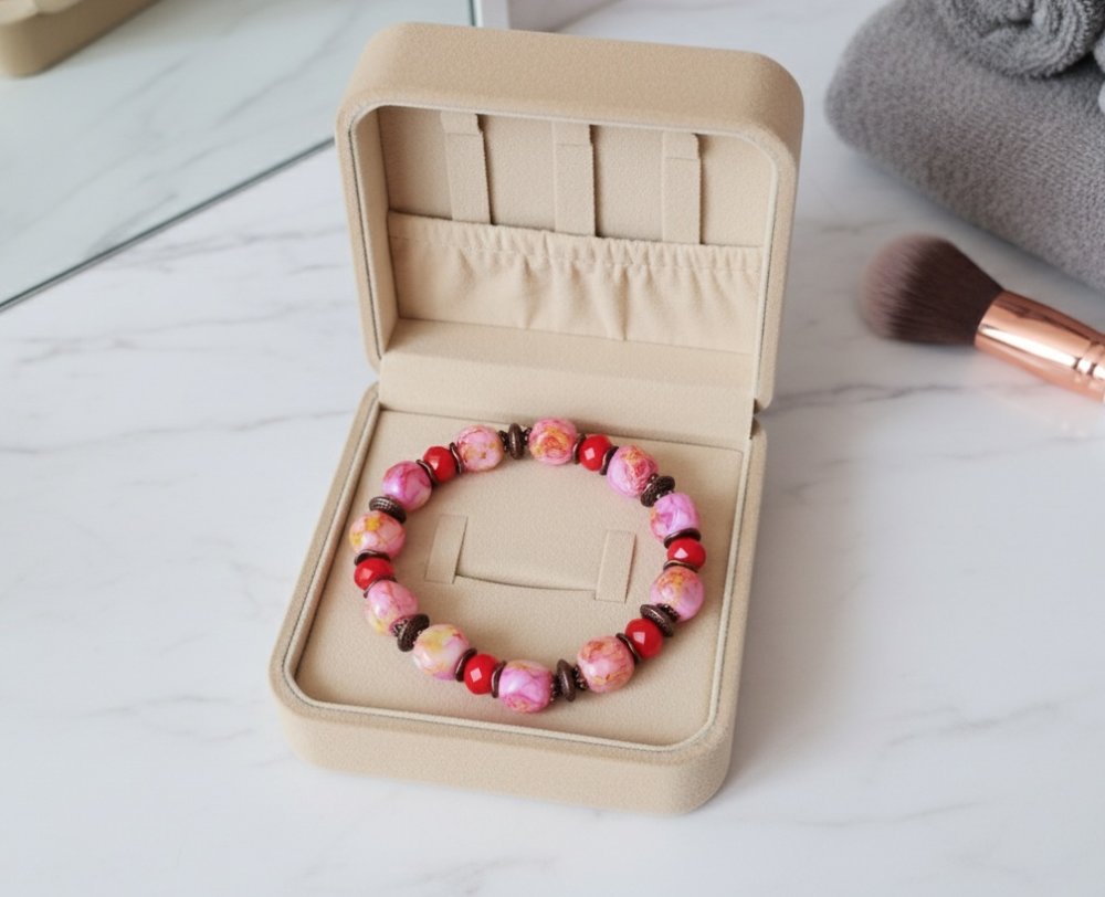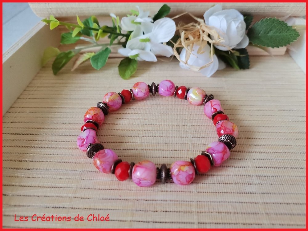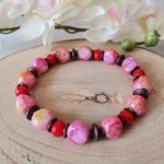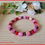 Bracelet perles rouges et roses