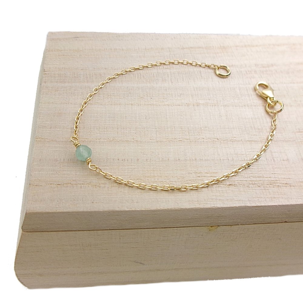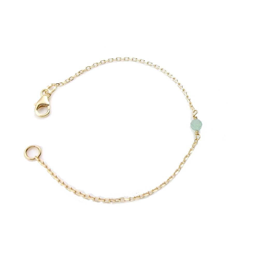 Un souffle de lumière dorée et une pierre d’aventurine douce comme le printemps… Ce bracelet fin en or 18 carats, incarne la sérénité et la féminité naturelle