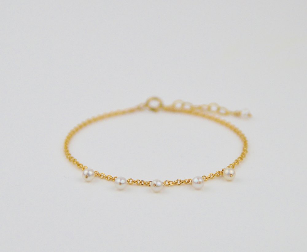 Bracelet fin en or laminé - grelots en perle d'eau douce - bijoux mariage
