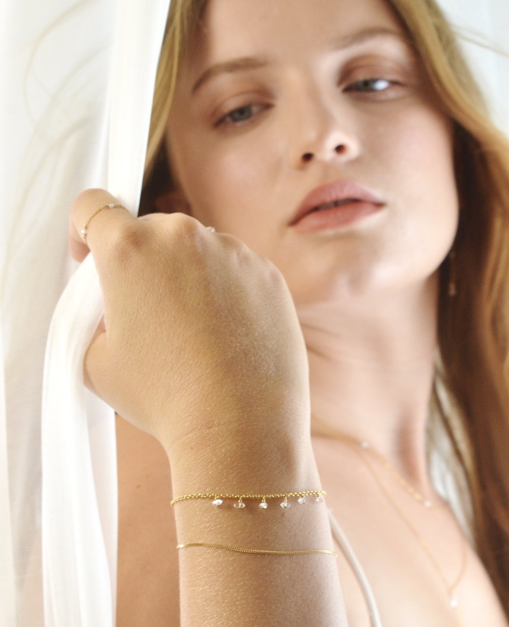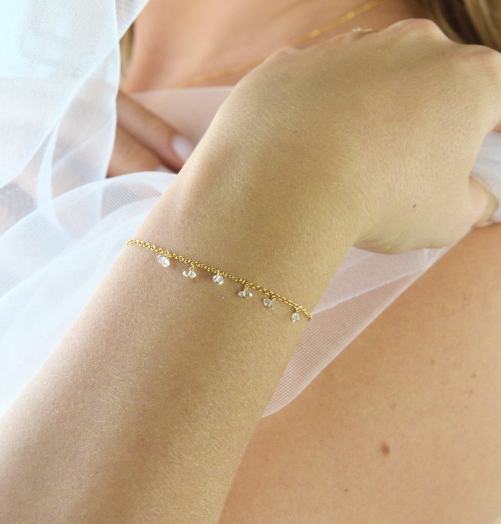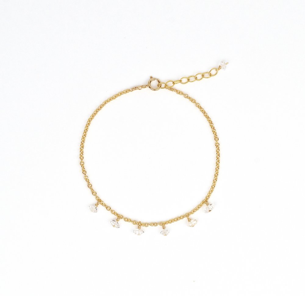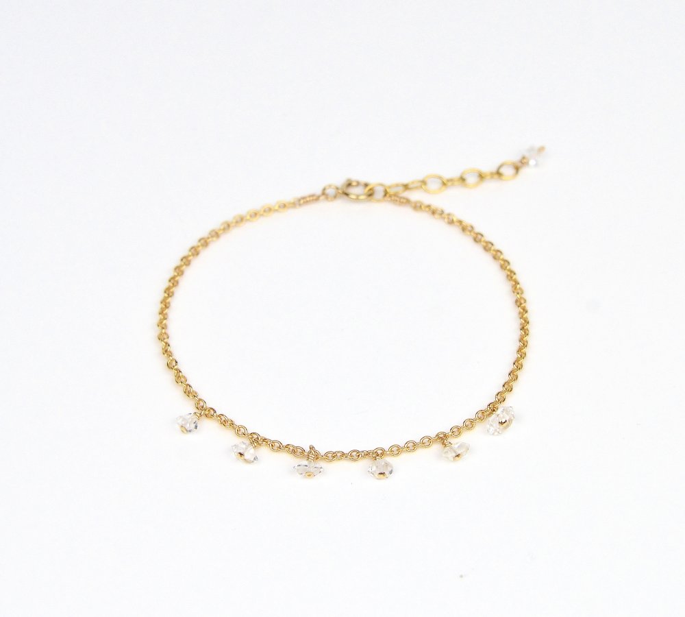 Bracelet fin minimaliste en or laminé et diamants d'Herkimer - Bracelet à grelots