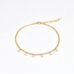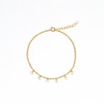 Tout en légèreté, le bracelet Cléa mêle or laminé et diamants d’Herkimer aux reflets cristallins. Suspendues le long d'une fine chaîne, les pierres captent la lumière comme de discrets éclats d’étoiles. Un bijou fin et lumineux, inspiré par la douceur lunaire.