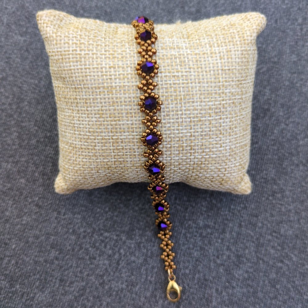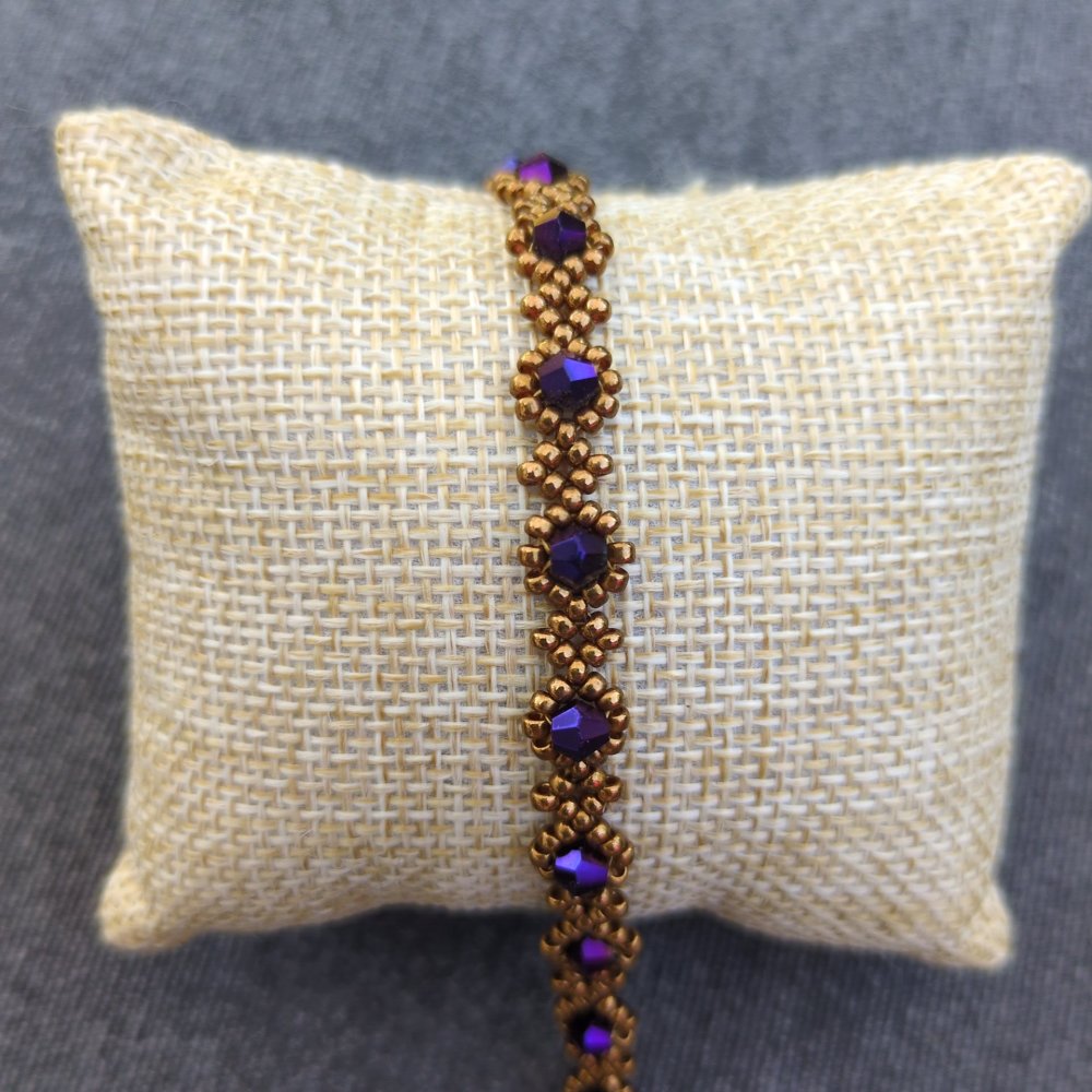 Bracelet tressé de perles en verre et perles miyuki aux finitions plaqué-or gold filled.