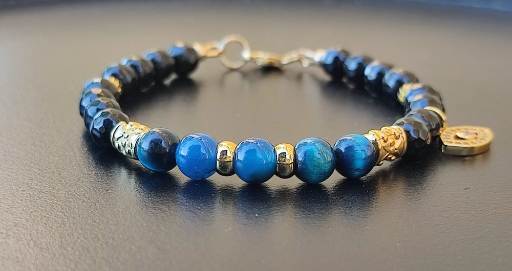 Bracelet œil de tigre bleu et onyx noir – Protection et intuition