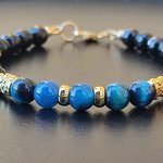 Ce bracelet raffiné est composé de : Perles naturelles d’Onyx noir facetté et d’Œil de Tigre bleu de 6 mm, d' Intercalaires et breloque œil en plaqué or 18K.