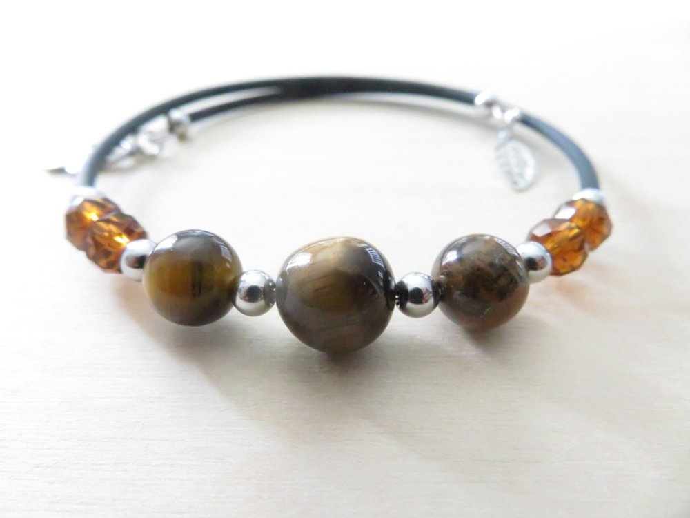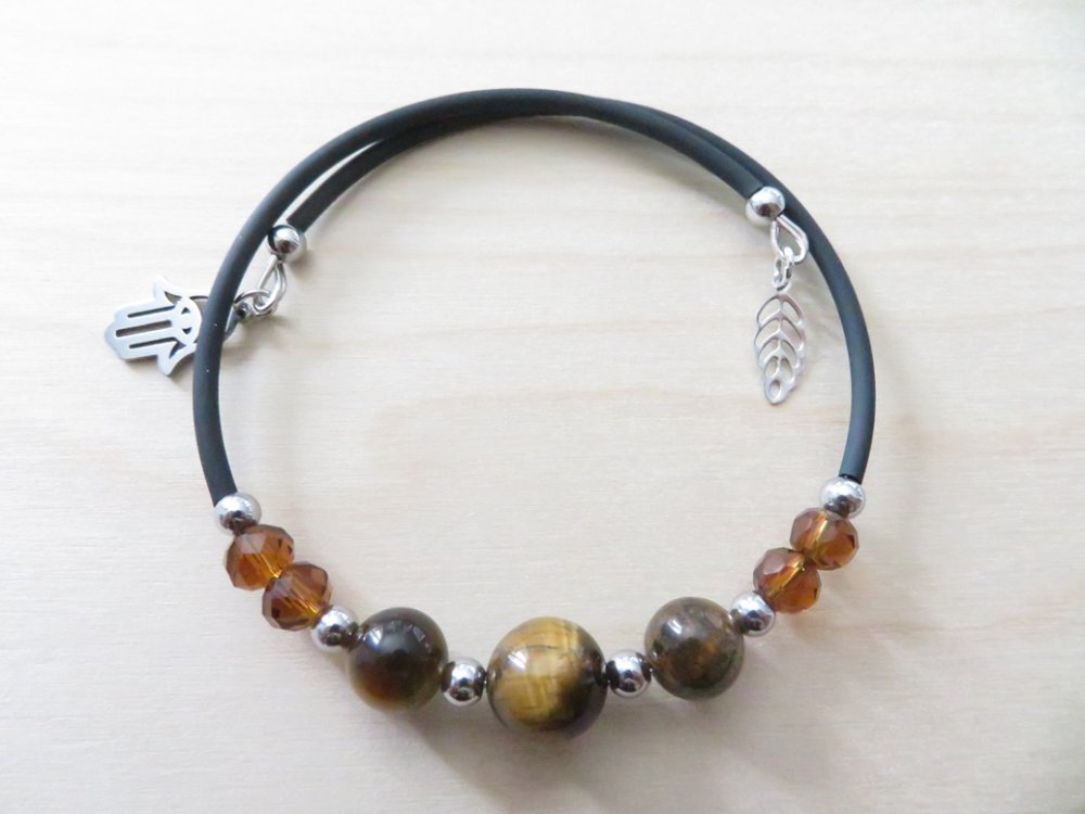 Bracelet en pierres naturelles Œil de tigre avec fil mémoire