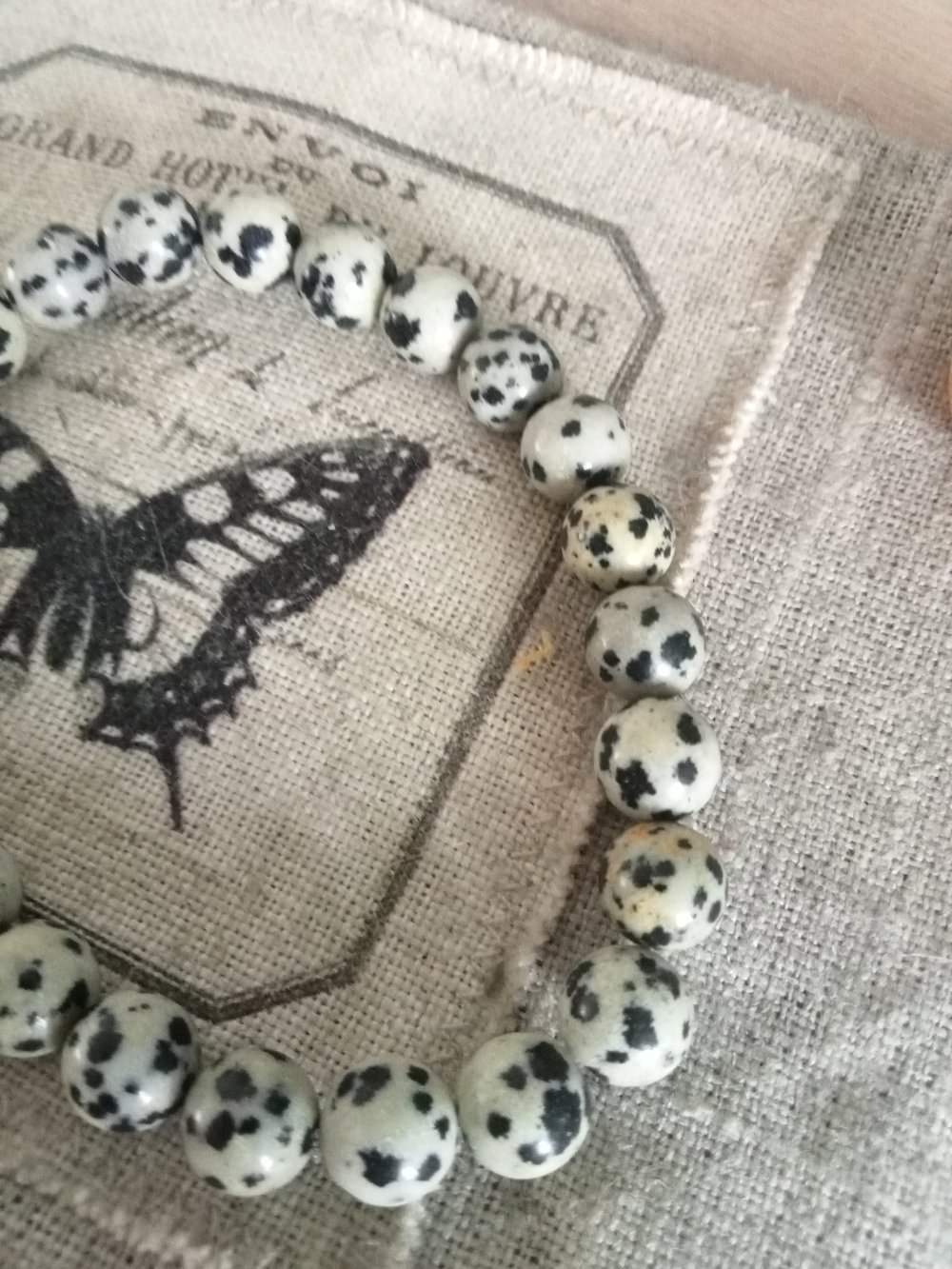 jaspe dalmatien perle 8 mm monter sur un élastique de 20 cm