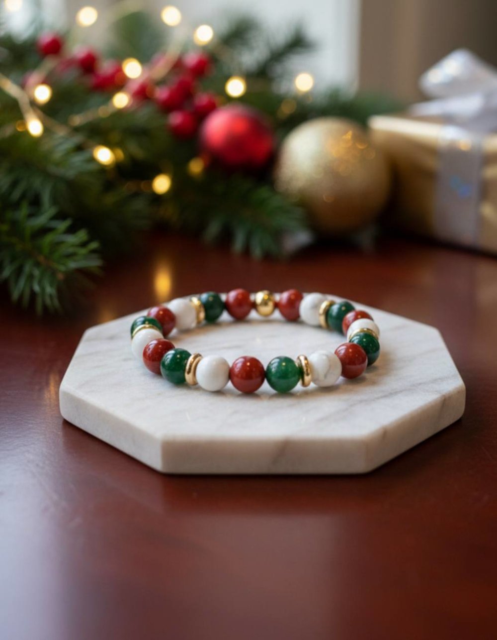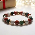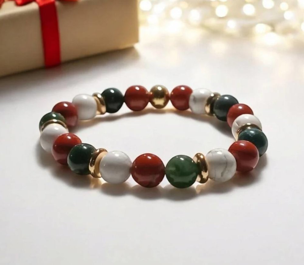 Bracelet Jaspe Rouge, Howlite & Agate Mousse – Édition Noël