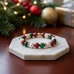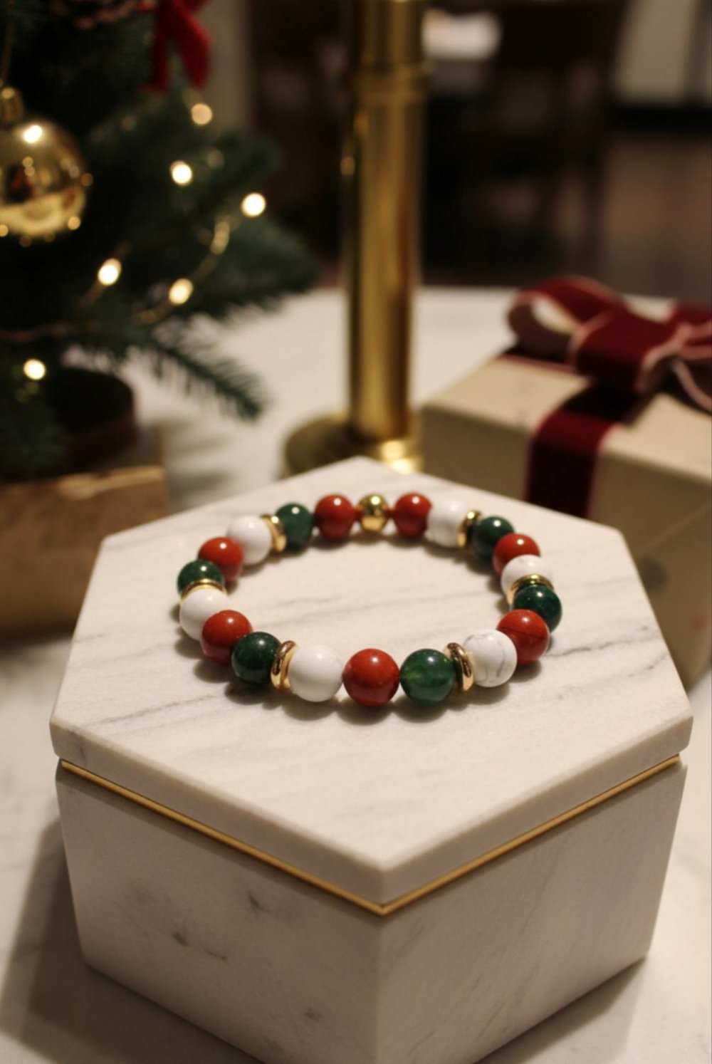 Le mélange du rouge profond, du blanc marbré et du vert délicat crée un bijou festif, équilibré et parfaitement adapté à l’esprit de Noël.