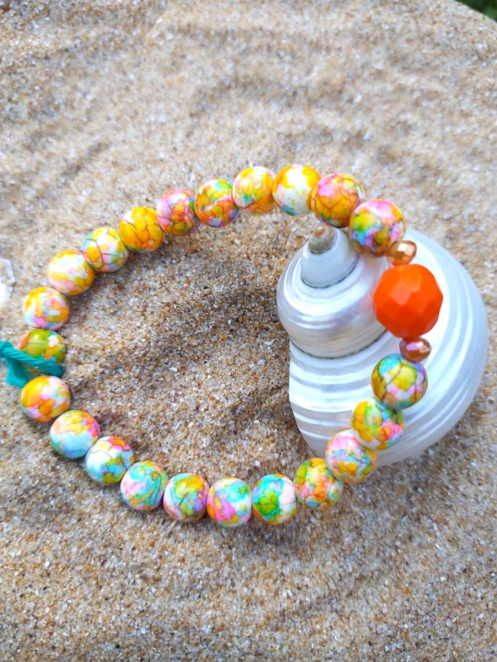 Un bracelet éclatant de perles multicolores jaune et orange, pensé pour diffuser bonne humeur et vitalité au quotidien 🌈✨