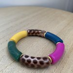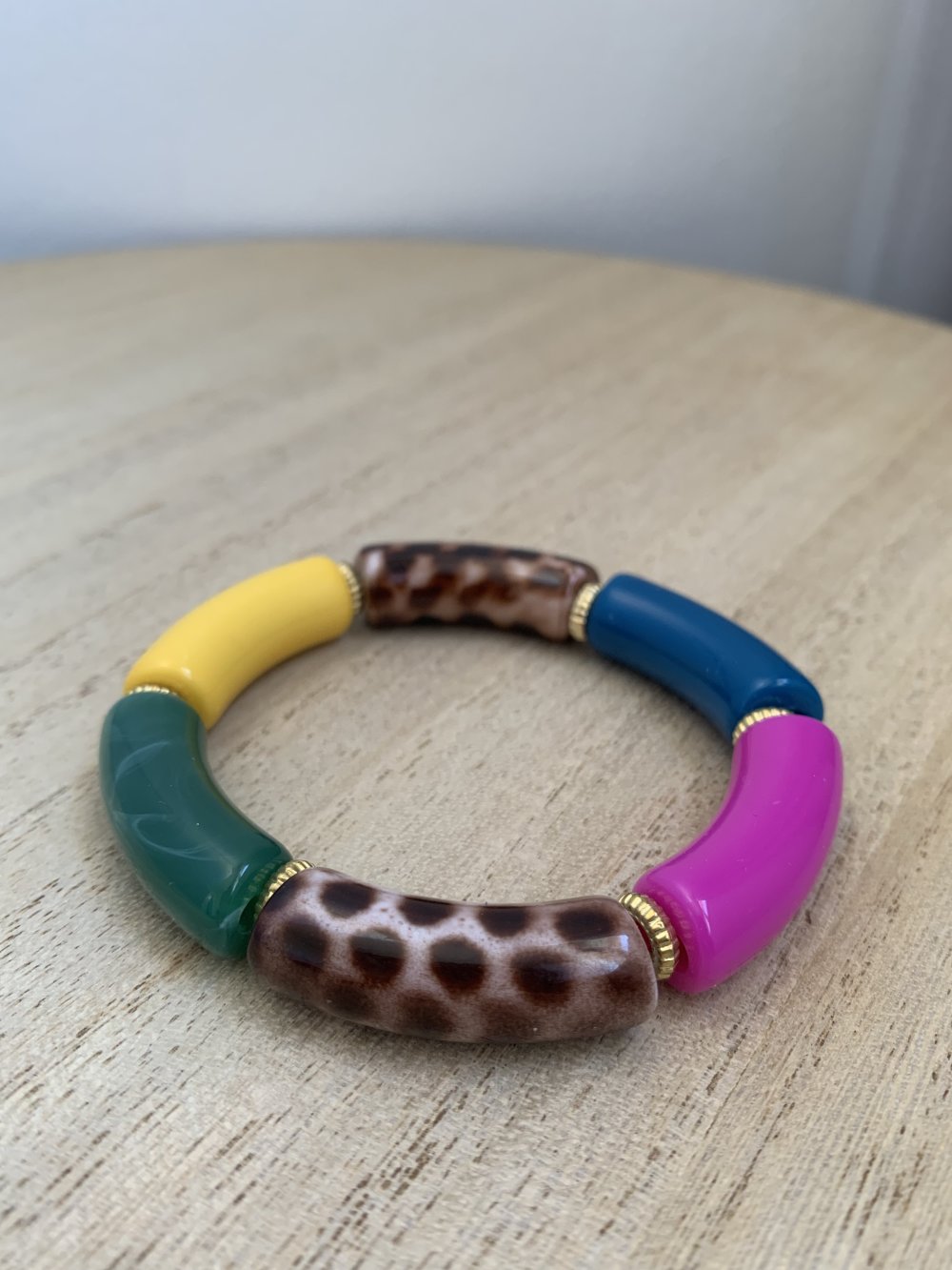 Bracelet élastique avec perles acryliques incurvées.