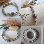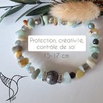 Voici un bracelet élastiqué monté sur un fil stretch de 0,8mm, il est composé de perles éclats d'amazonite et de labradorite. Il est parfait pour les poignets de 15 à 17 cm.