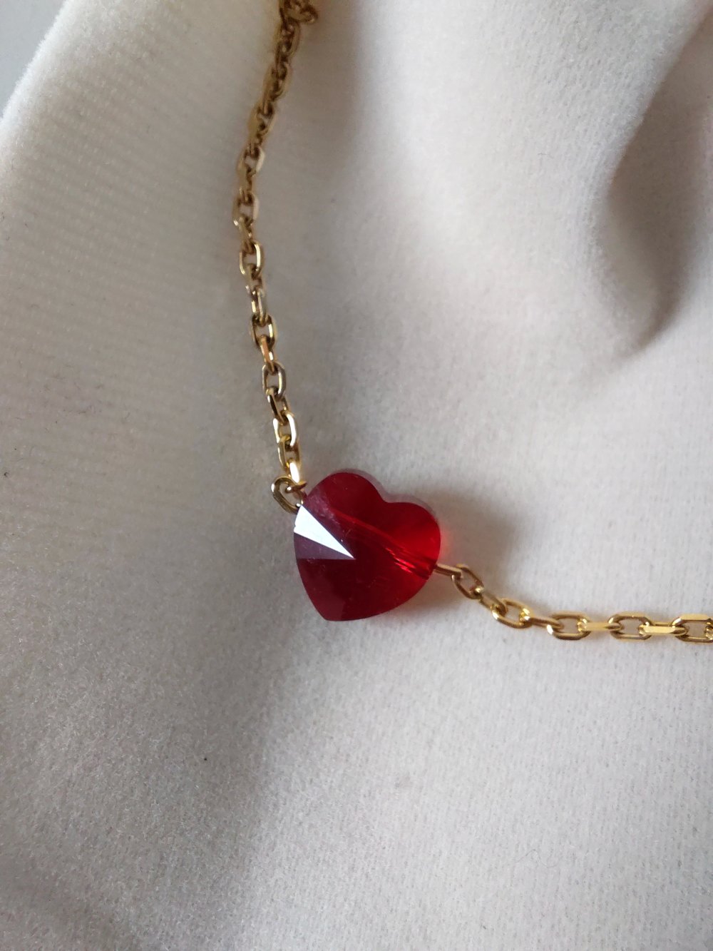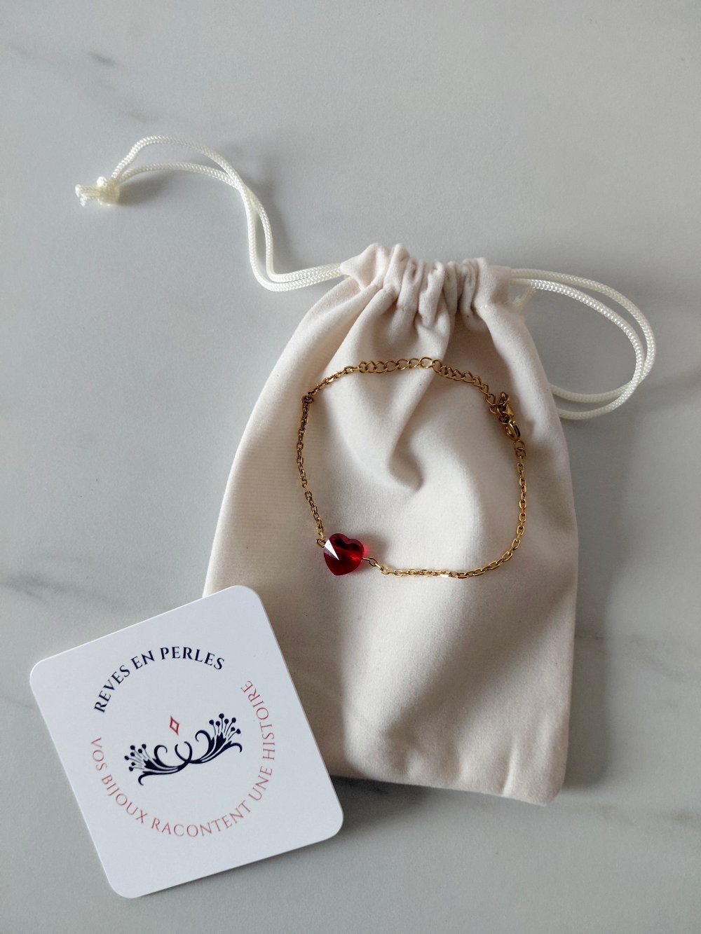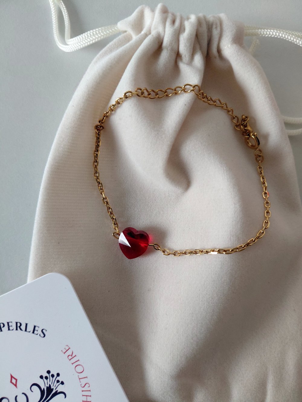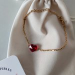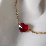 Bracelet minimaliste, coeur en cristal rouge, idéal cadeau femme