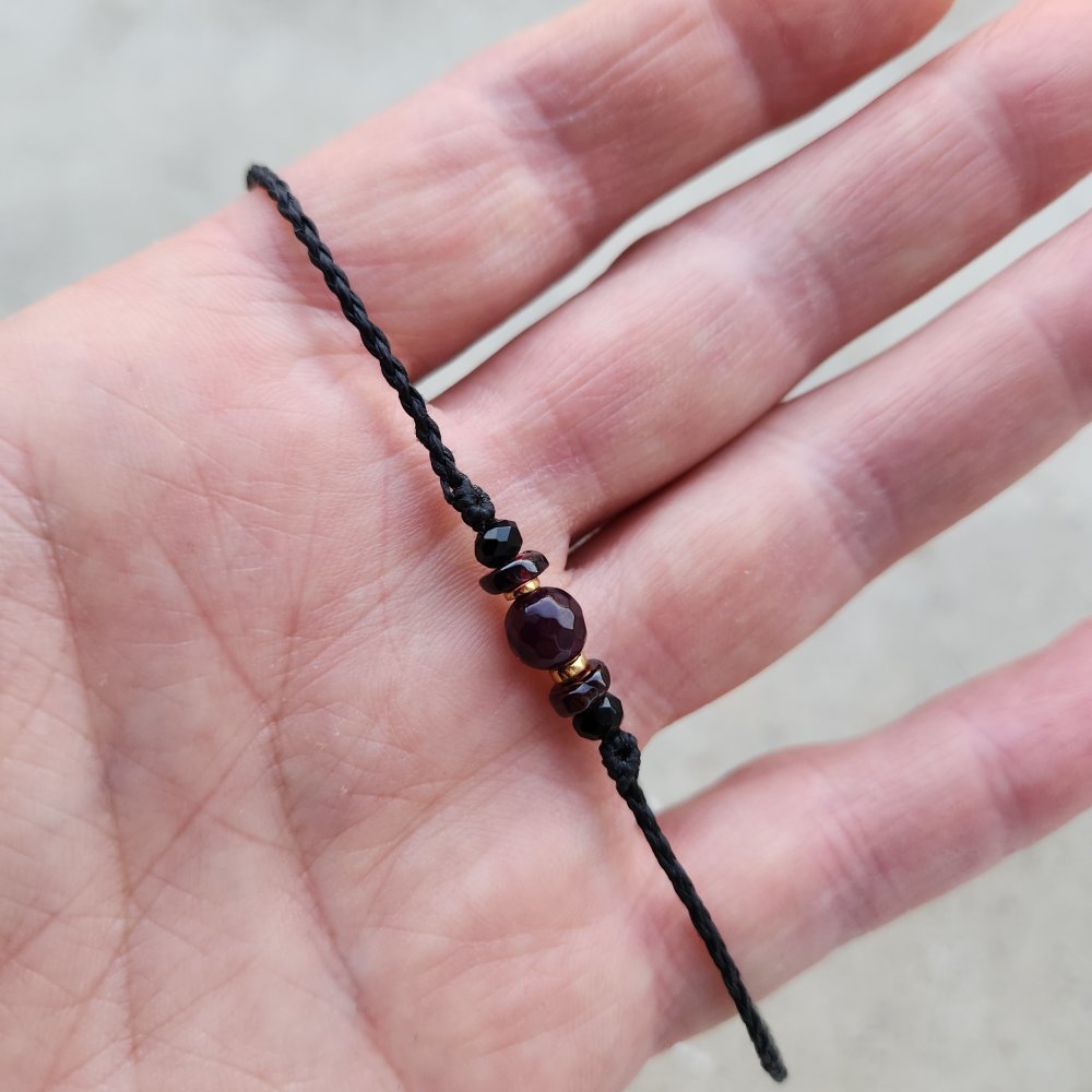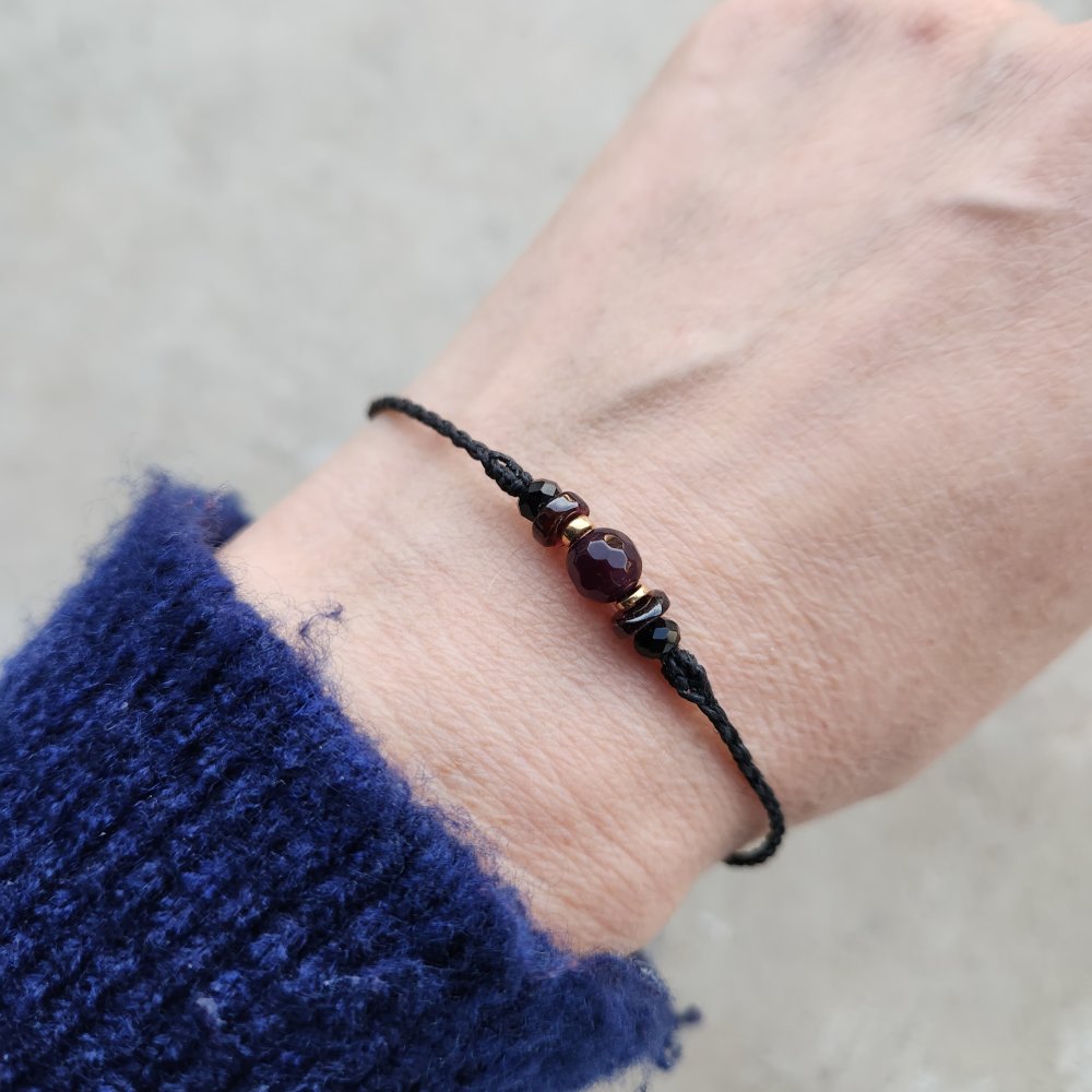 bracelet macramé fil noir diverses rocailles miyuki diverses perles en pierre grenat ,verre tchèque