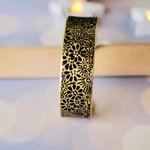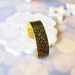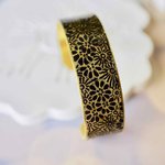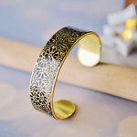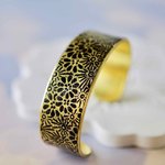 Bracelet jonc manchette, en laiton, papier japonais noir et or fleuri, bracelet réglable, origami, washi