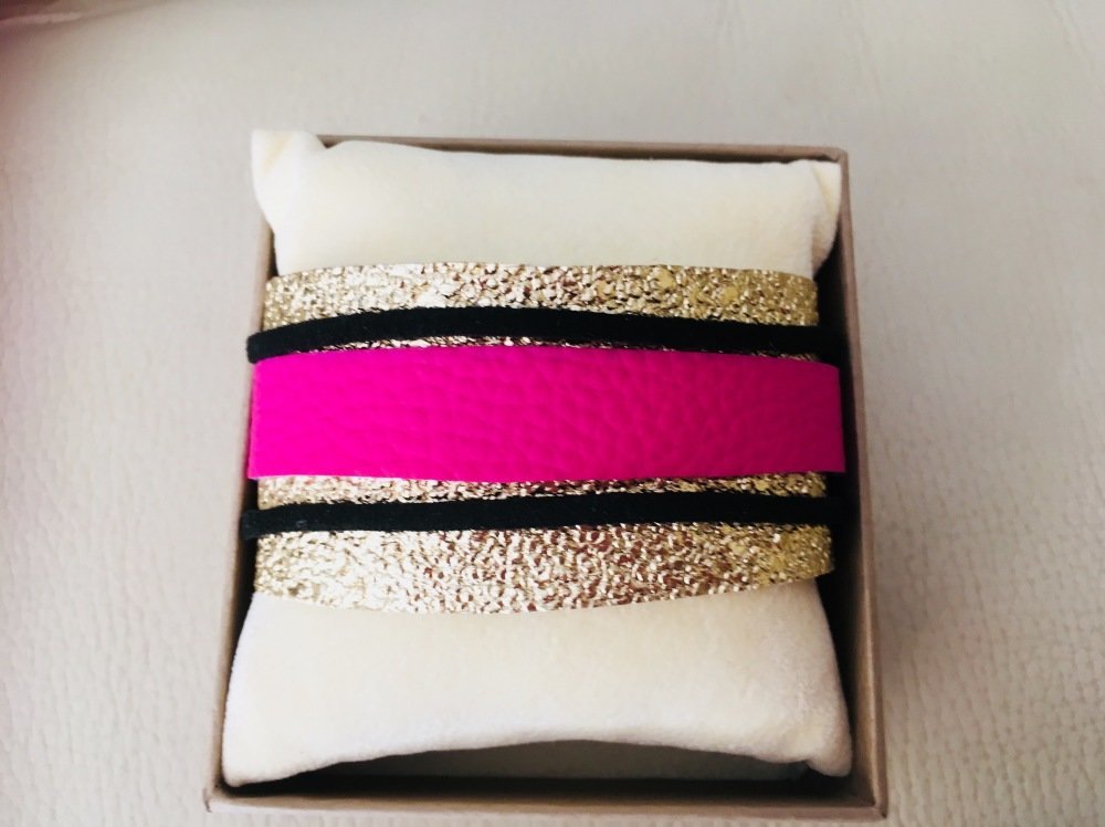 Bracelet manchette or noir et rose élégant et moderne