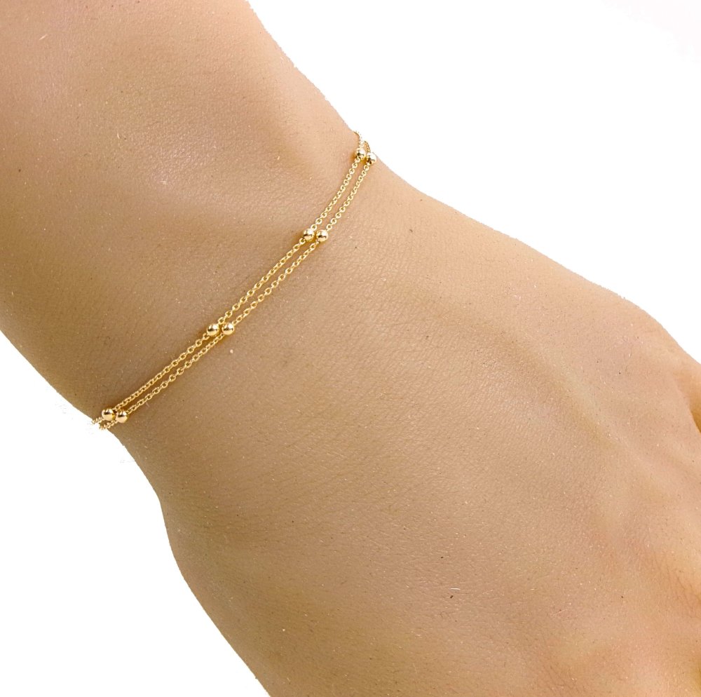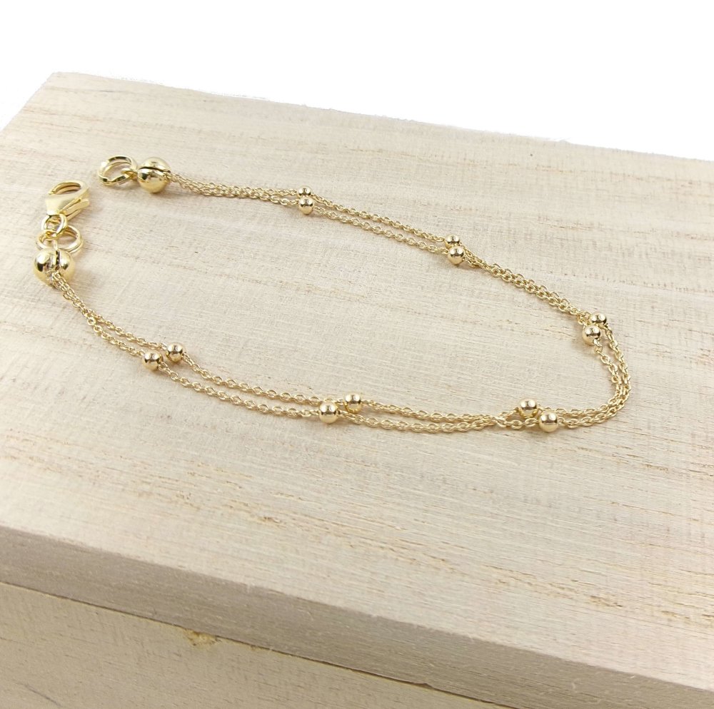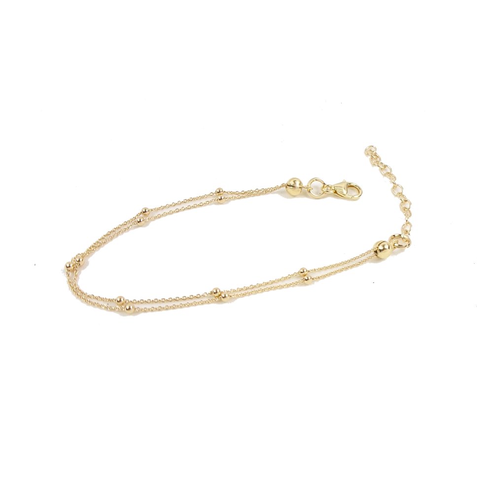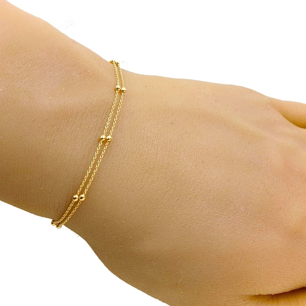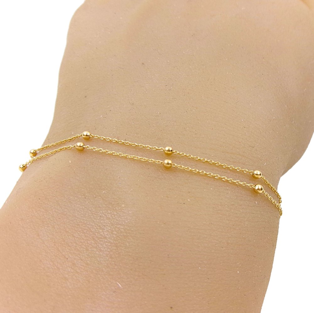 Un bracelet raffiné en or 18 carats, composé de deux chaînes perlées satellites. Élégant et minimaliste, il sublime toutes vos tenues et fait un cadeau idéal.