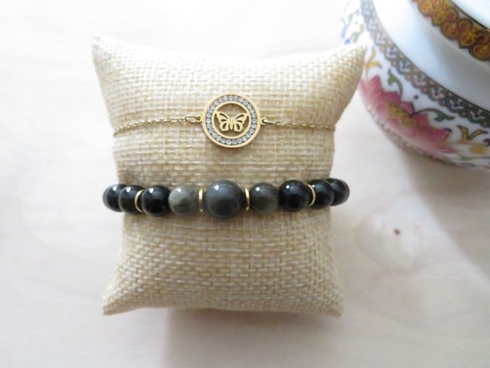 Duo de bracelet en pierres naturelles et acier inoxydable
