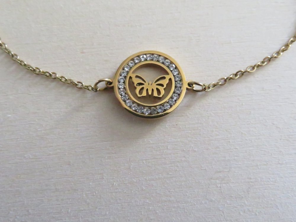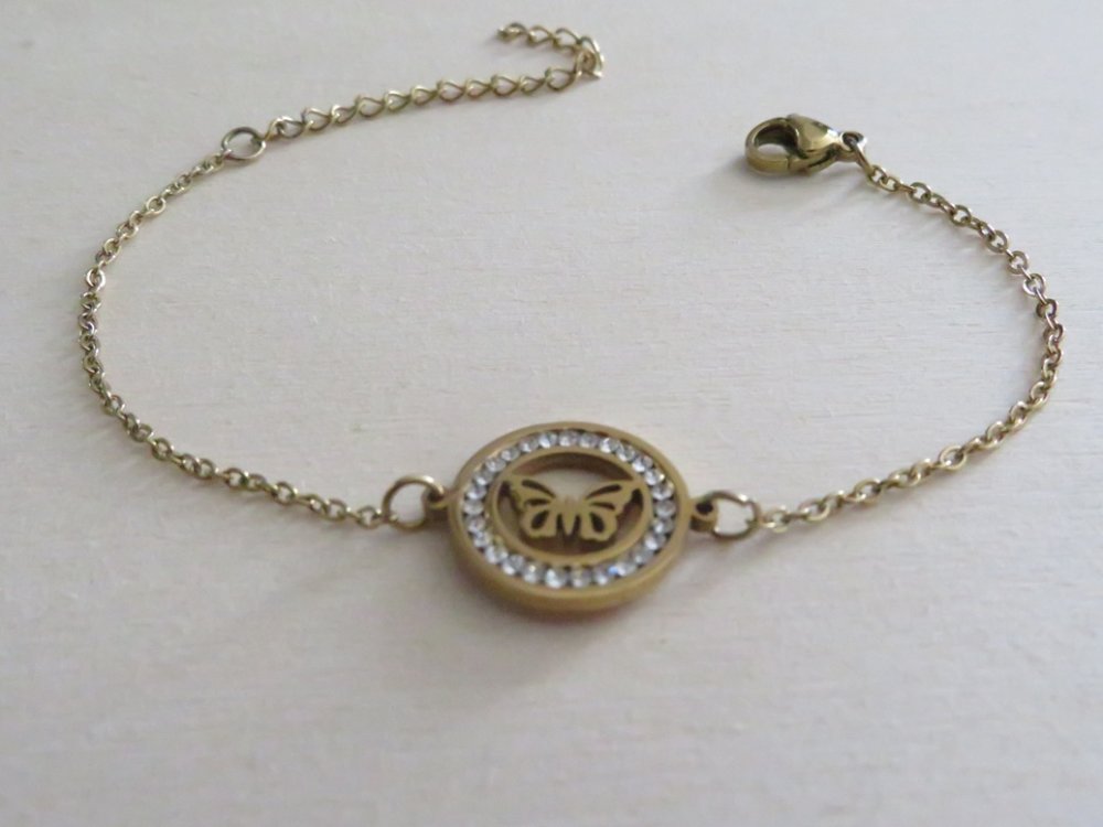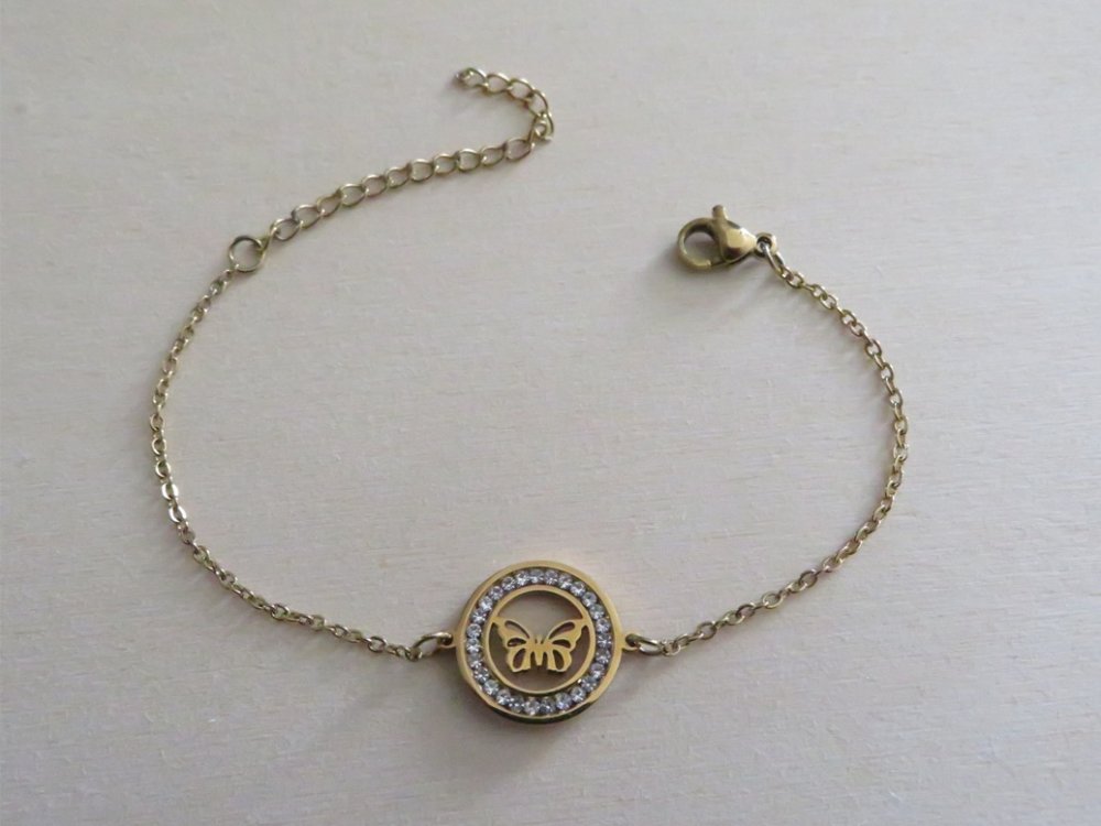 - 1 bracelet chaine avec un beau pendentif papillon en acier inoxydable or et strass blanc – Bracelet réglable de 15,5 cm + 5 cm d’extension
