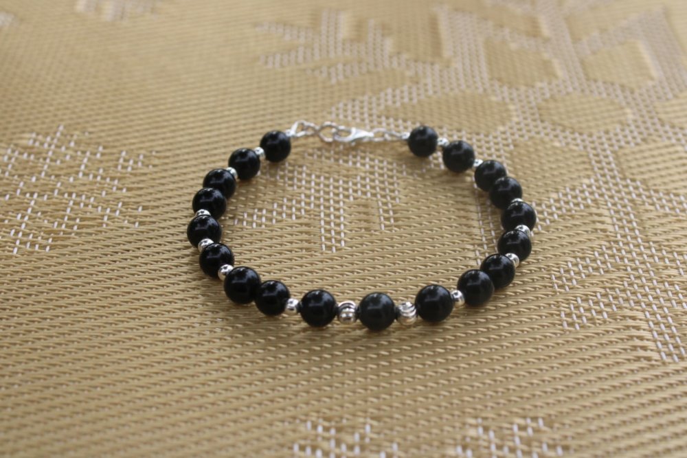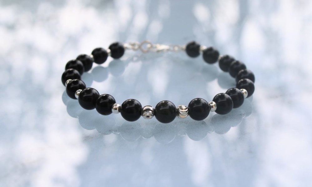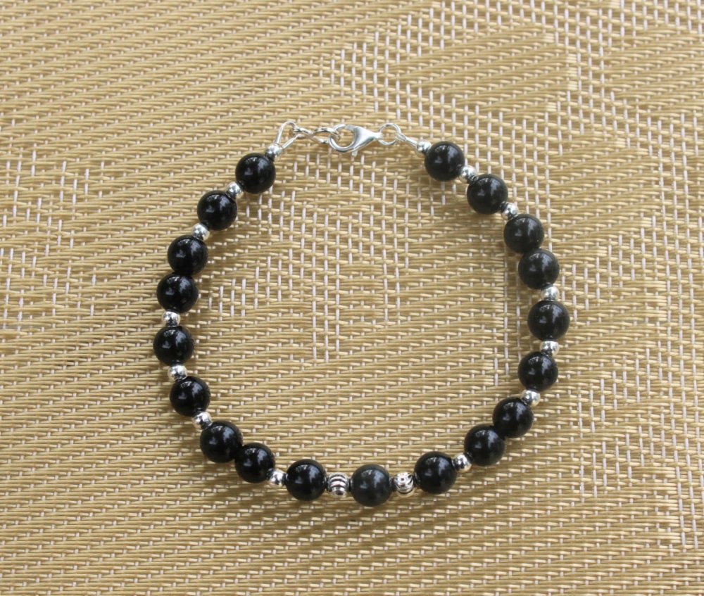 Bracelet raffiné en obsidienne œil céleste véritable ( appelée aussi obsidienne arc en ciel), pierre aux reflets chatoyants verts et violets selon la lumière. Les perles naturelles de 6 mm sont montées avec des apprêts en argent pour un bijou durable, élégant et intemporel.