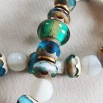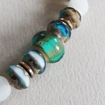 Une belle ligne pour ce bracelet avec des perles Opaline Indienne, des perles en Verre Tchèque polies au feu, et une grosse perle en verre soufflé artisanalement.
