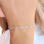 Bracelet multirang argent avec double chaîne perlée, cadeau anniversaire femme Ajout au panier