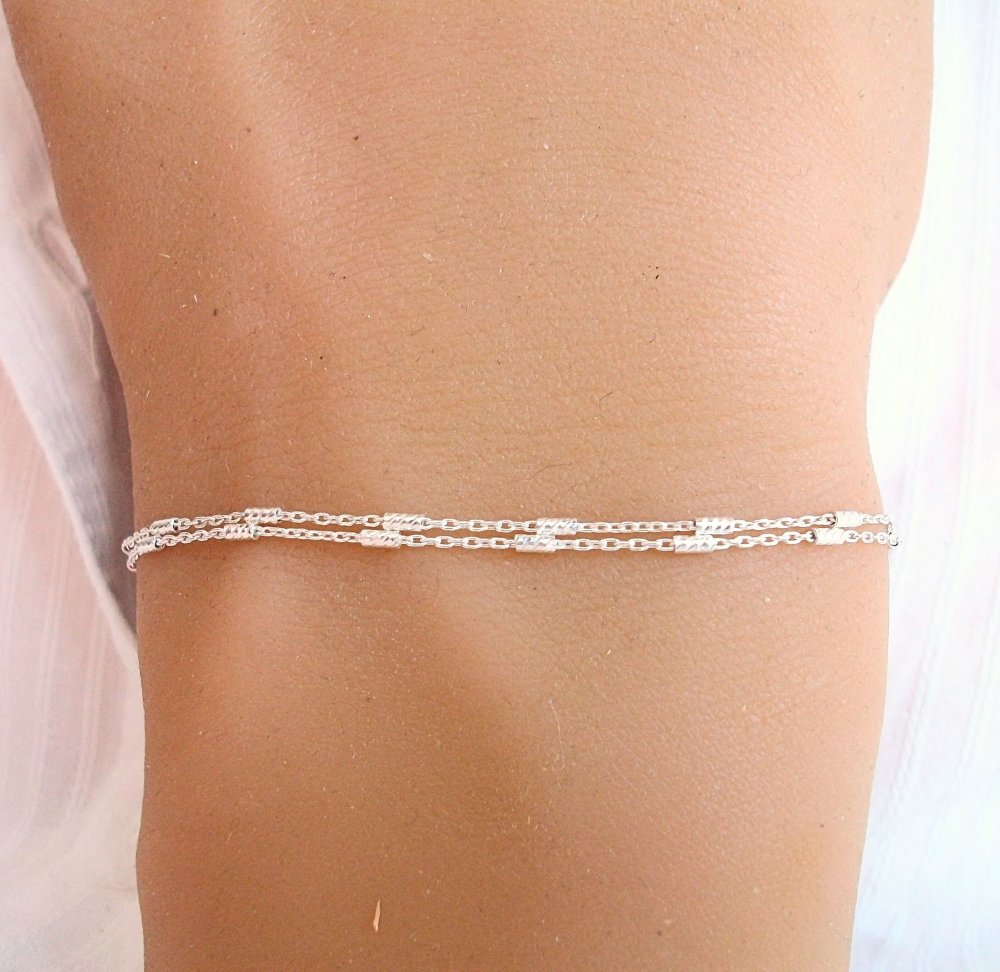 Bracelet multirang argent 925 – double chaîne perlée – bijou minimaliste élégant – cadeau femme Ajout au panier